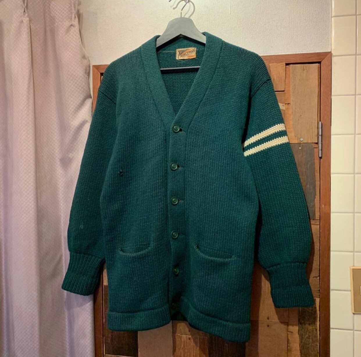 【New Item】● “PRINCETON” 40’s~50’s vintage Moss green wool design letterd cardigan