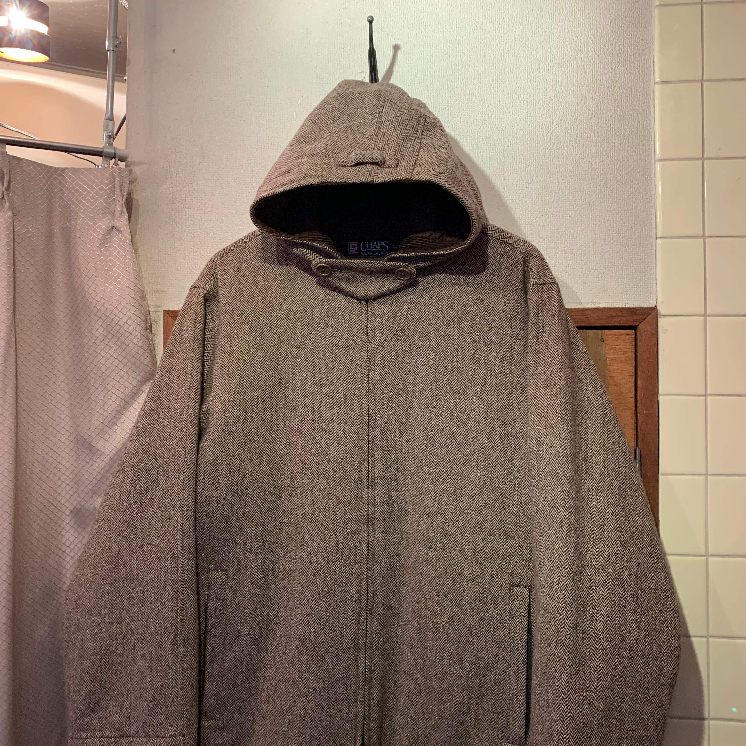 “CHAPS” herringbone wool/nylon zip up hooded reversible blouson
