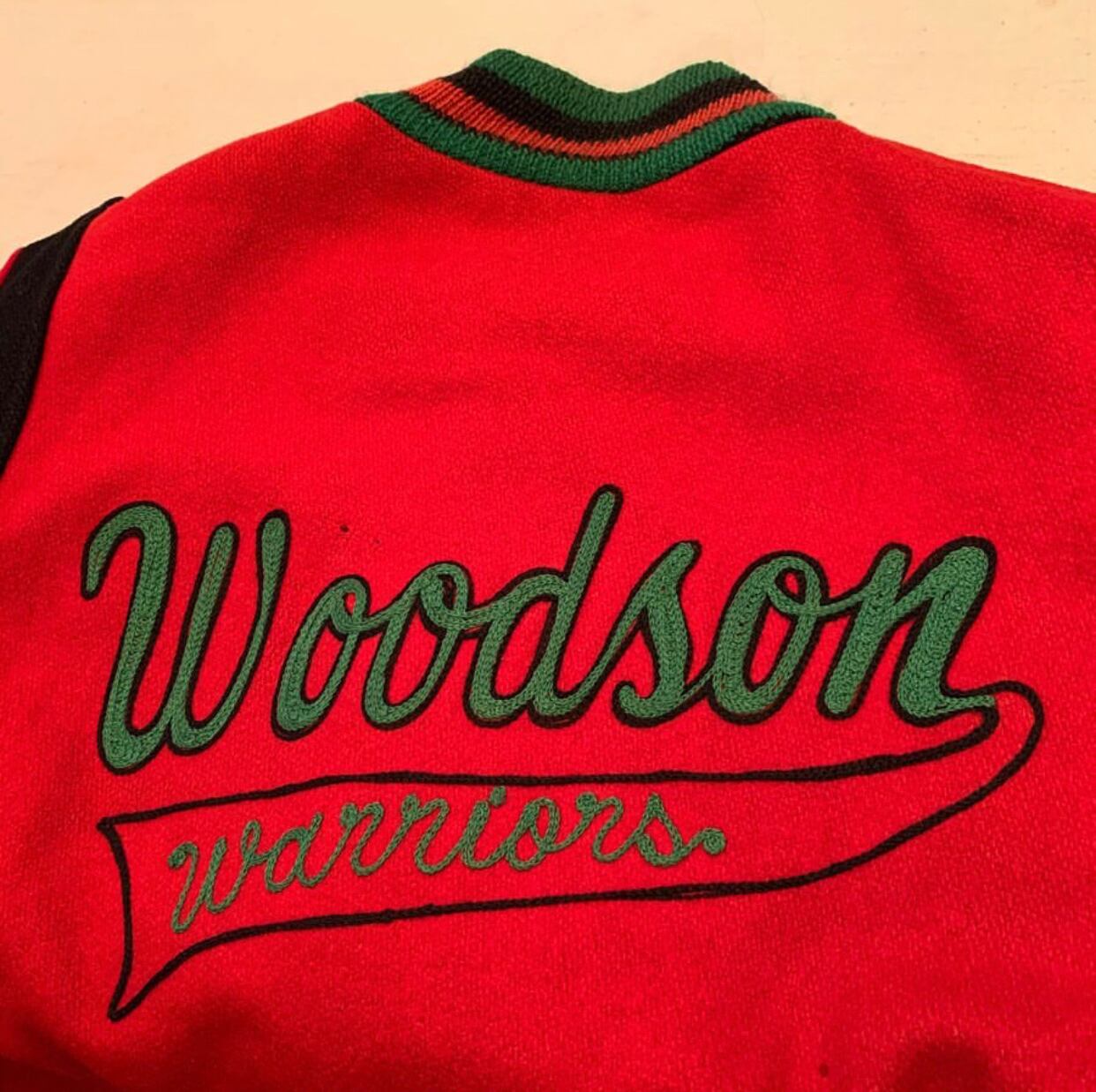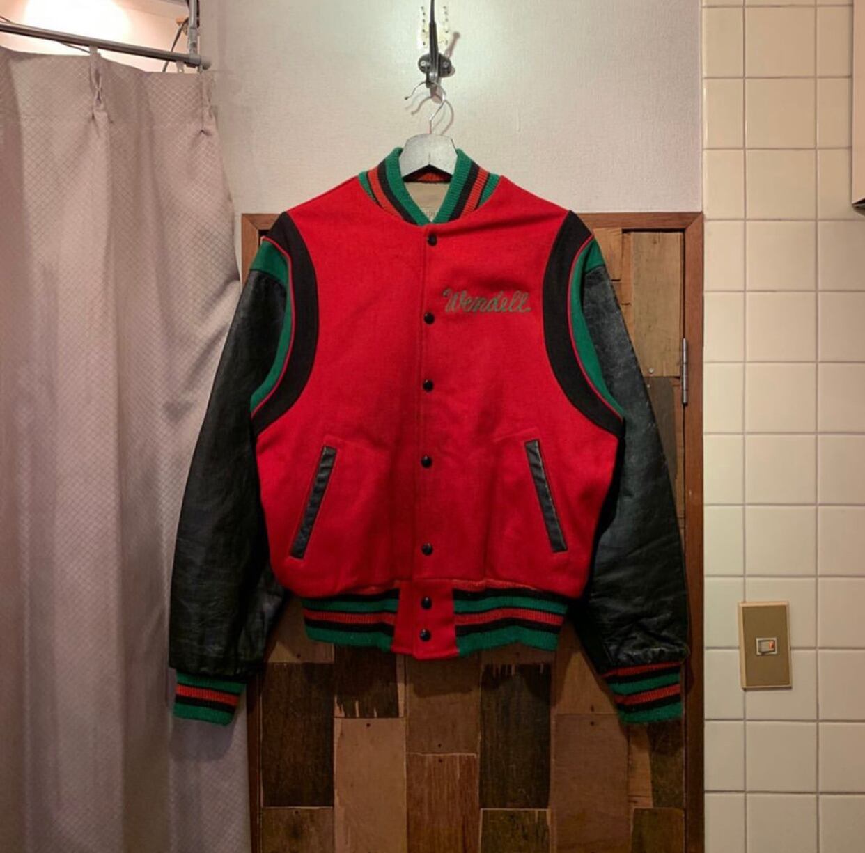 “EMPIRE” 60’s~70’s vintage Red×black×green base leather sleeve switch embroidery stadium jumper