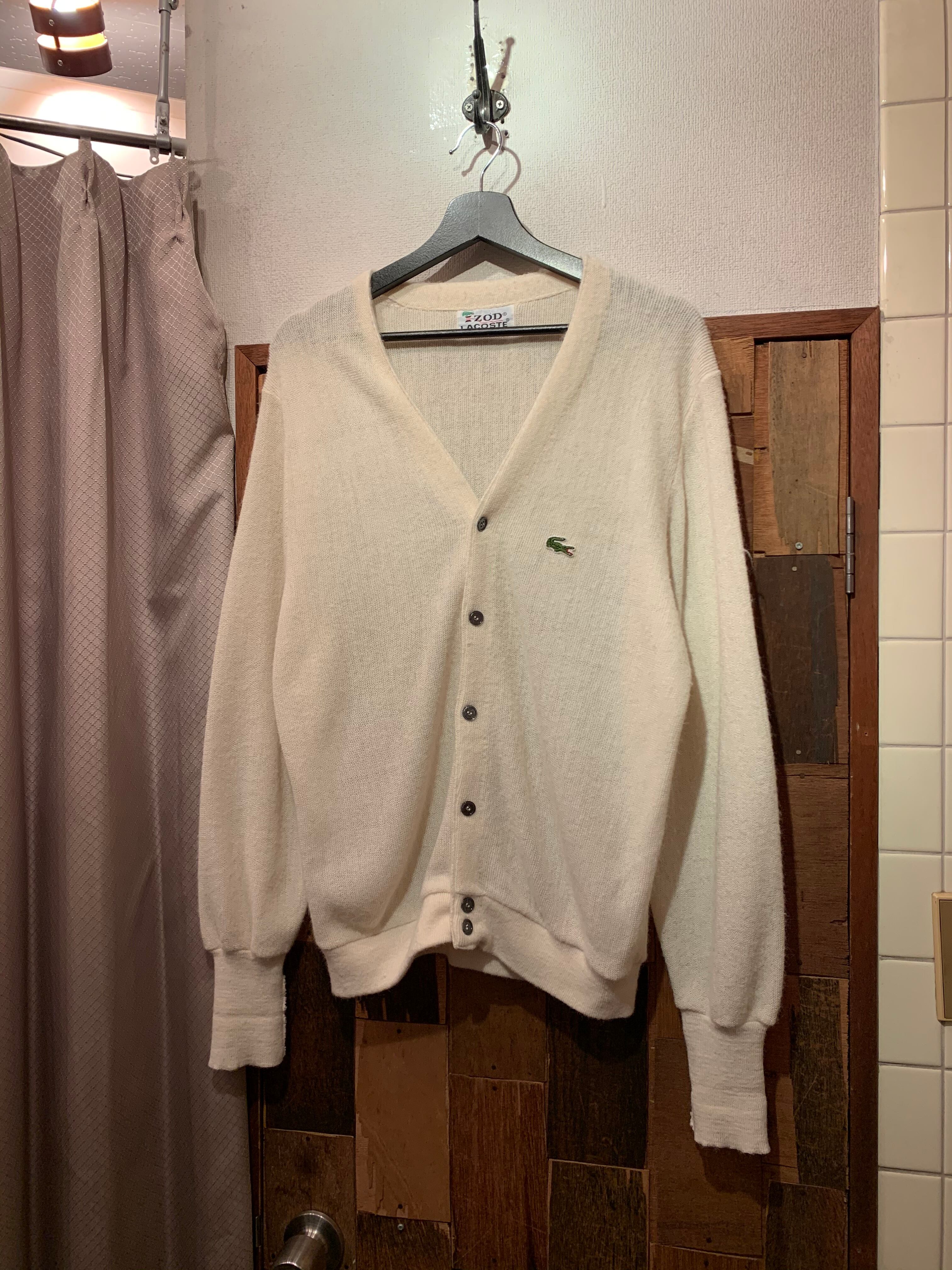 “IZOD LACOSTE” 80’s ivory point logo knit cardigan