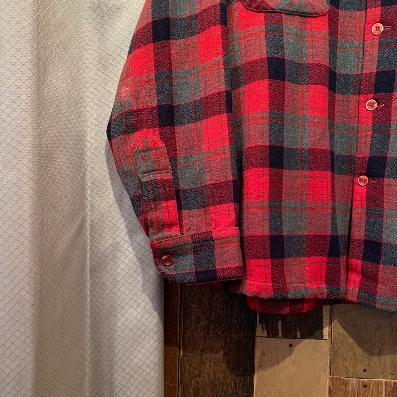 “PENDLETON” 60’s〜70’s vintage Red×black×gray wool check pattern L/S open collar shirt
