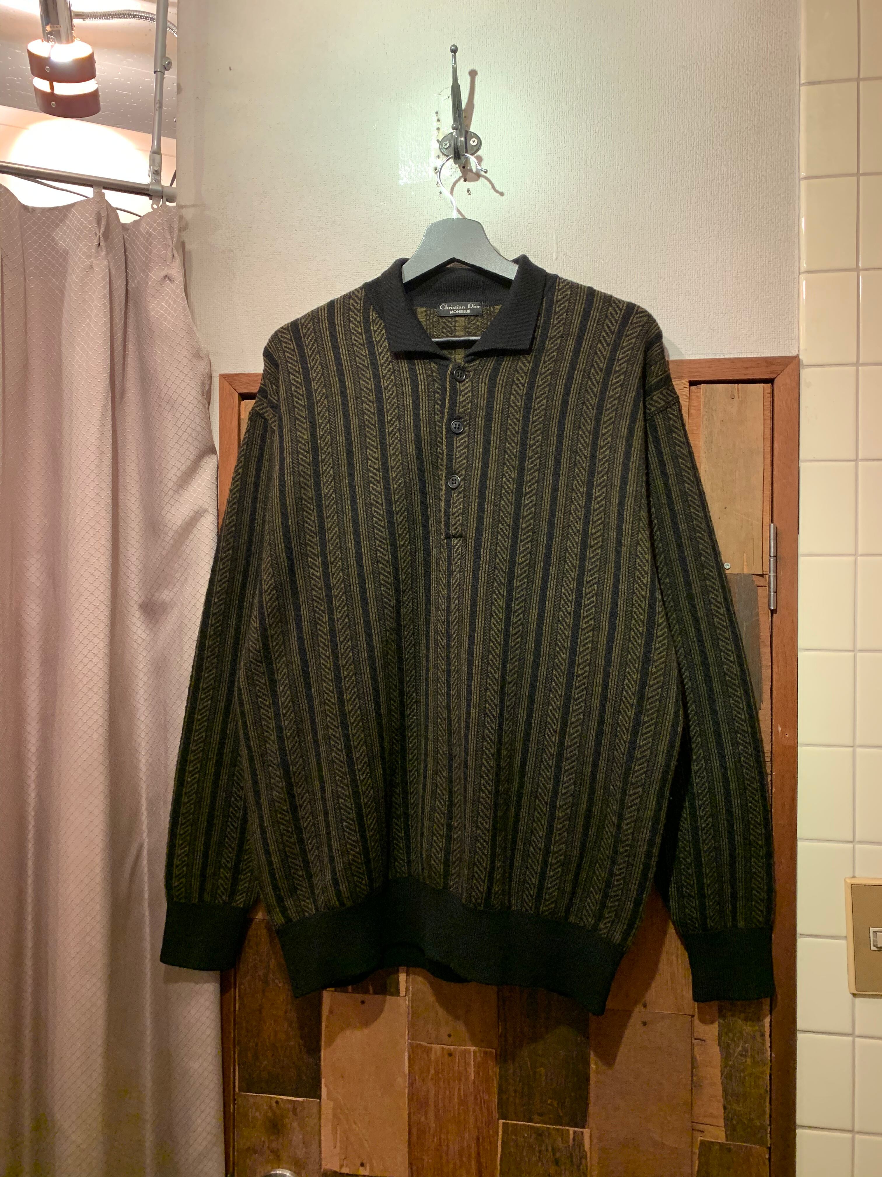 “Christian Dior” 90’s black repeating pattern knit polo shirt