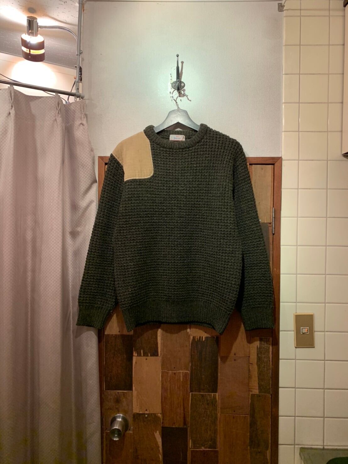 “Jantzen” Moss green wool/leather shooting knit sweater