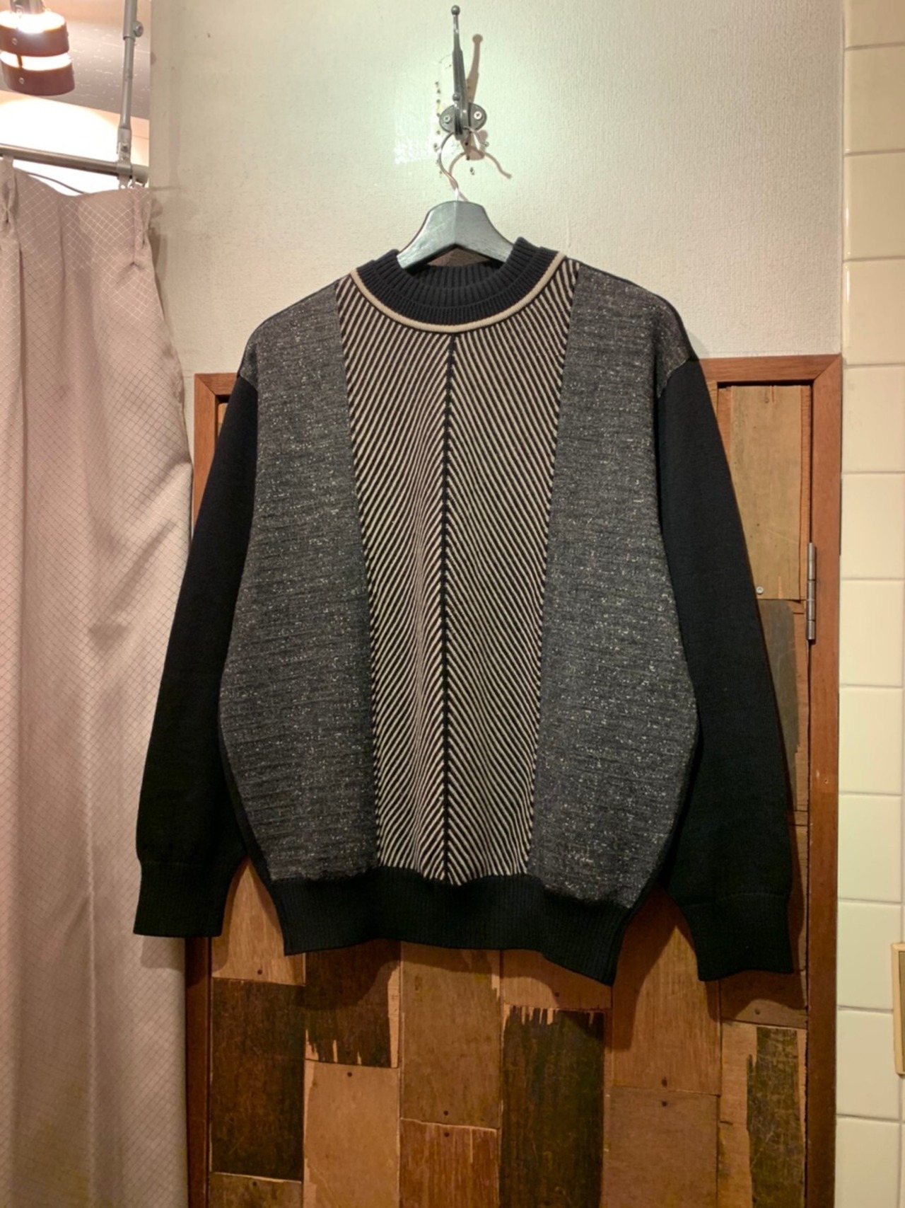 “barassi” black×gray×white wool front switch design sweater