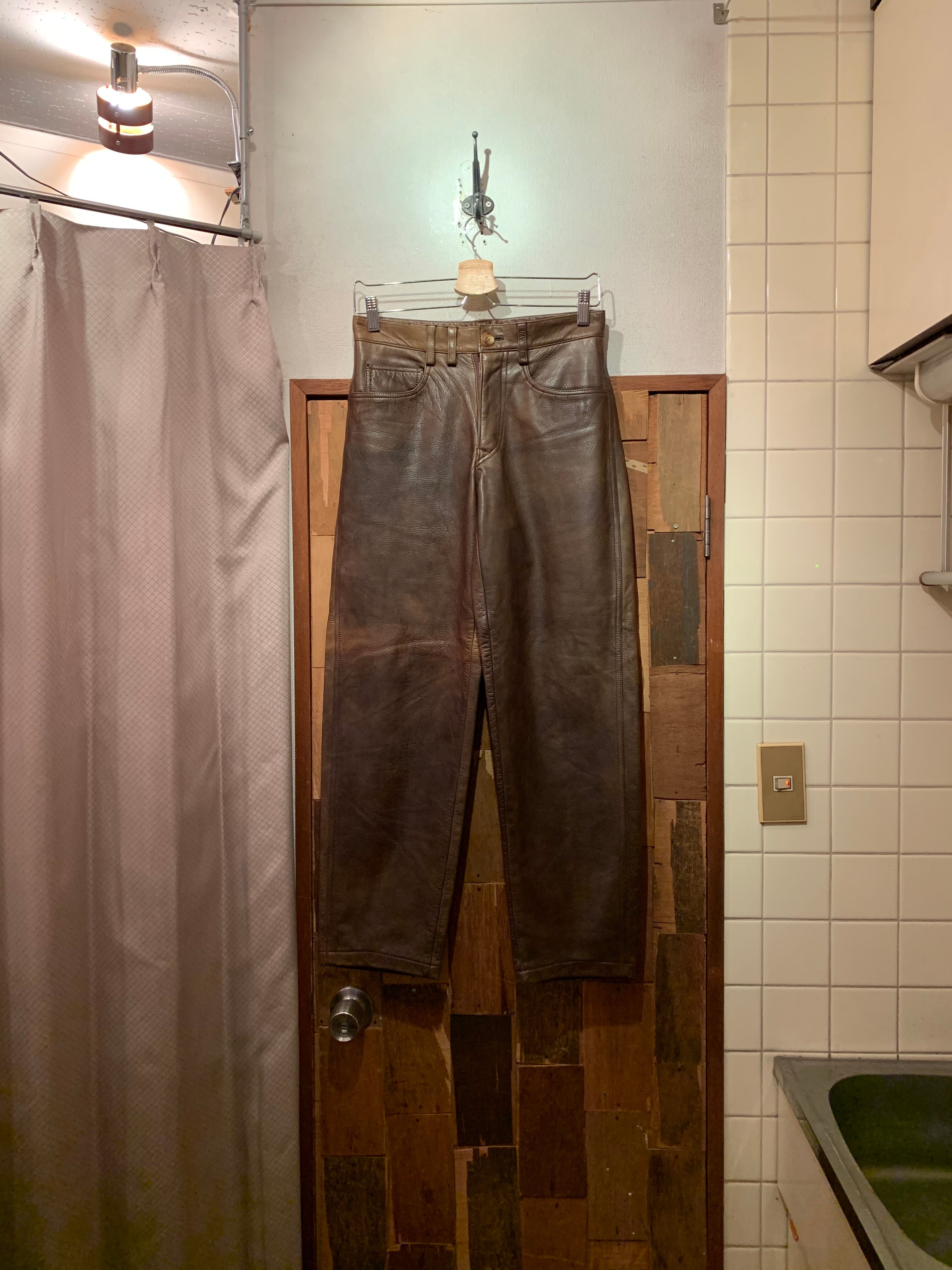 “COMME CA DU MODE” 90’s~ brown cow leather 5pocket tapered pants