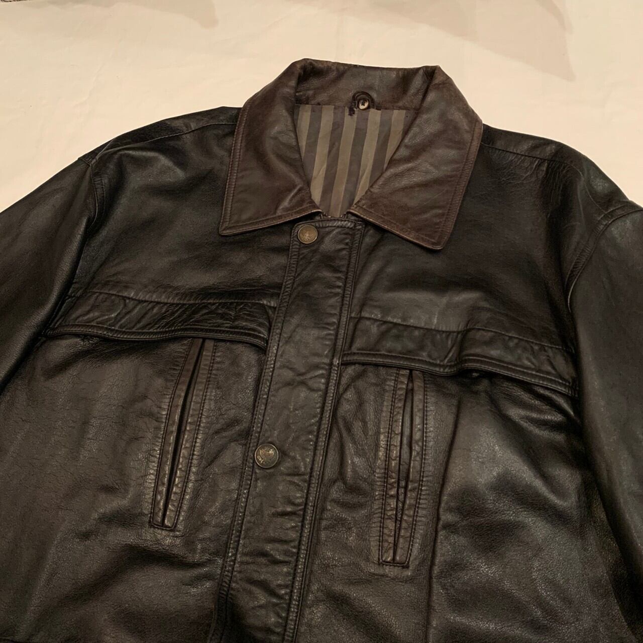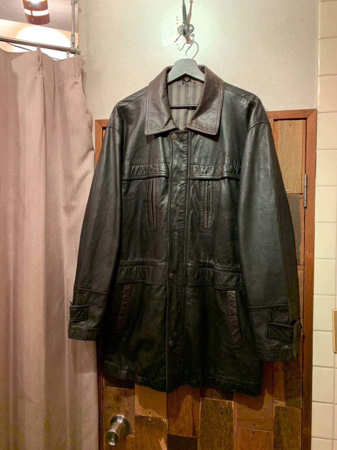 “Brand unknown” Black×brown sheep leather zip up fly front zip up coat
