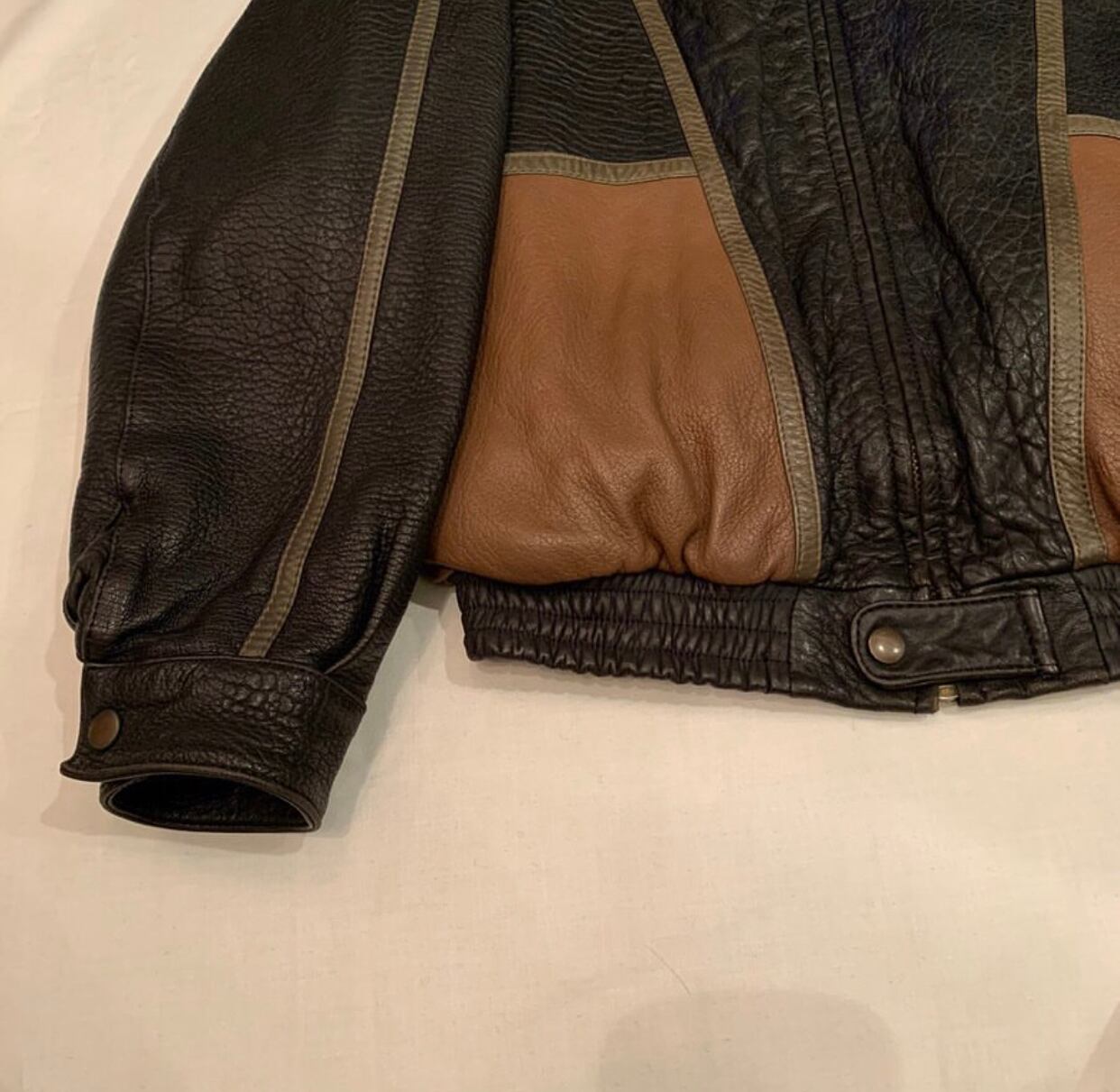 “DOG FIGHT” Black×khaki×brown leather taping×switch design blouson