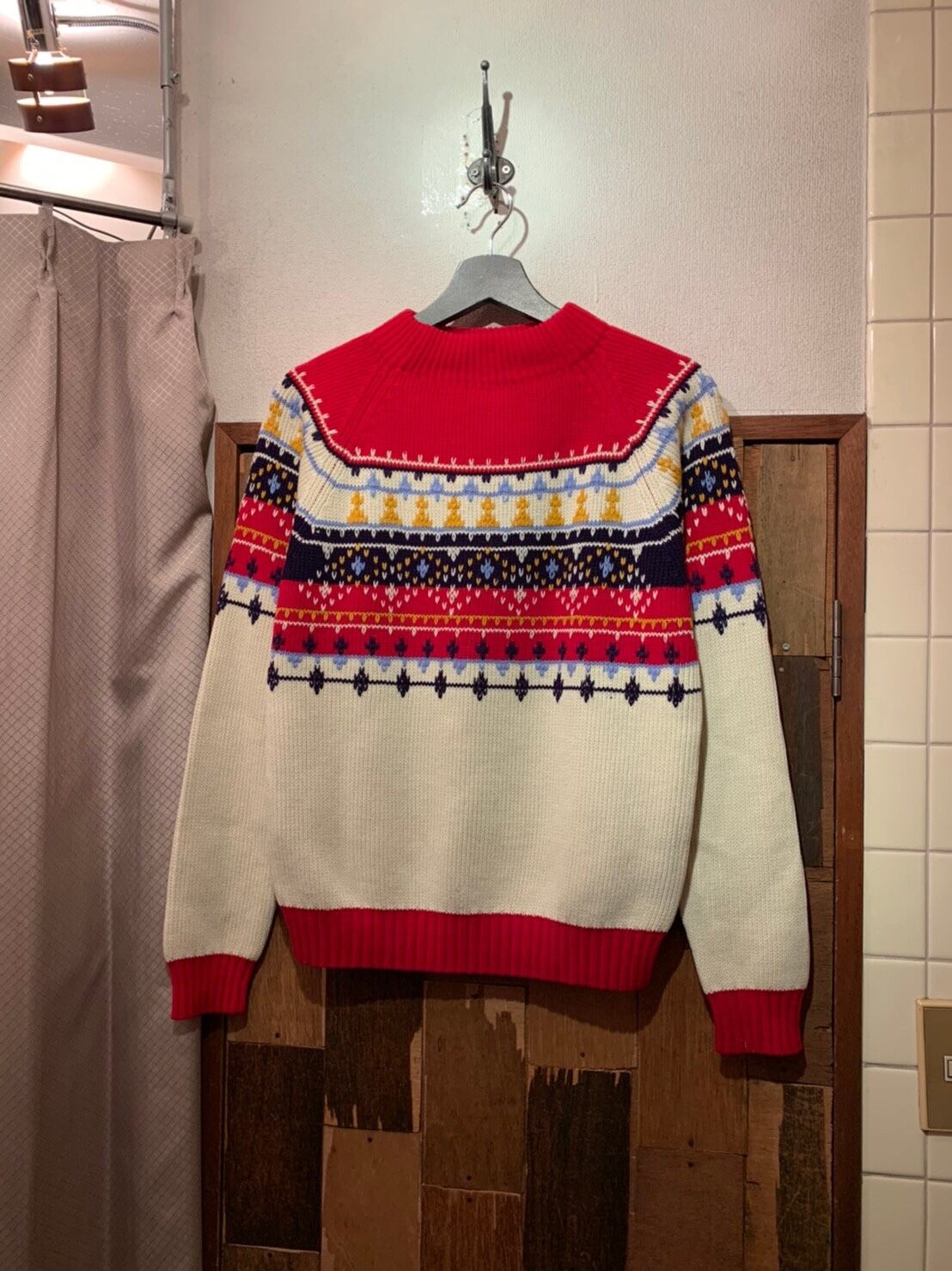 “Jc penny” red×white nordic pattern bottle-neck knit sweater