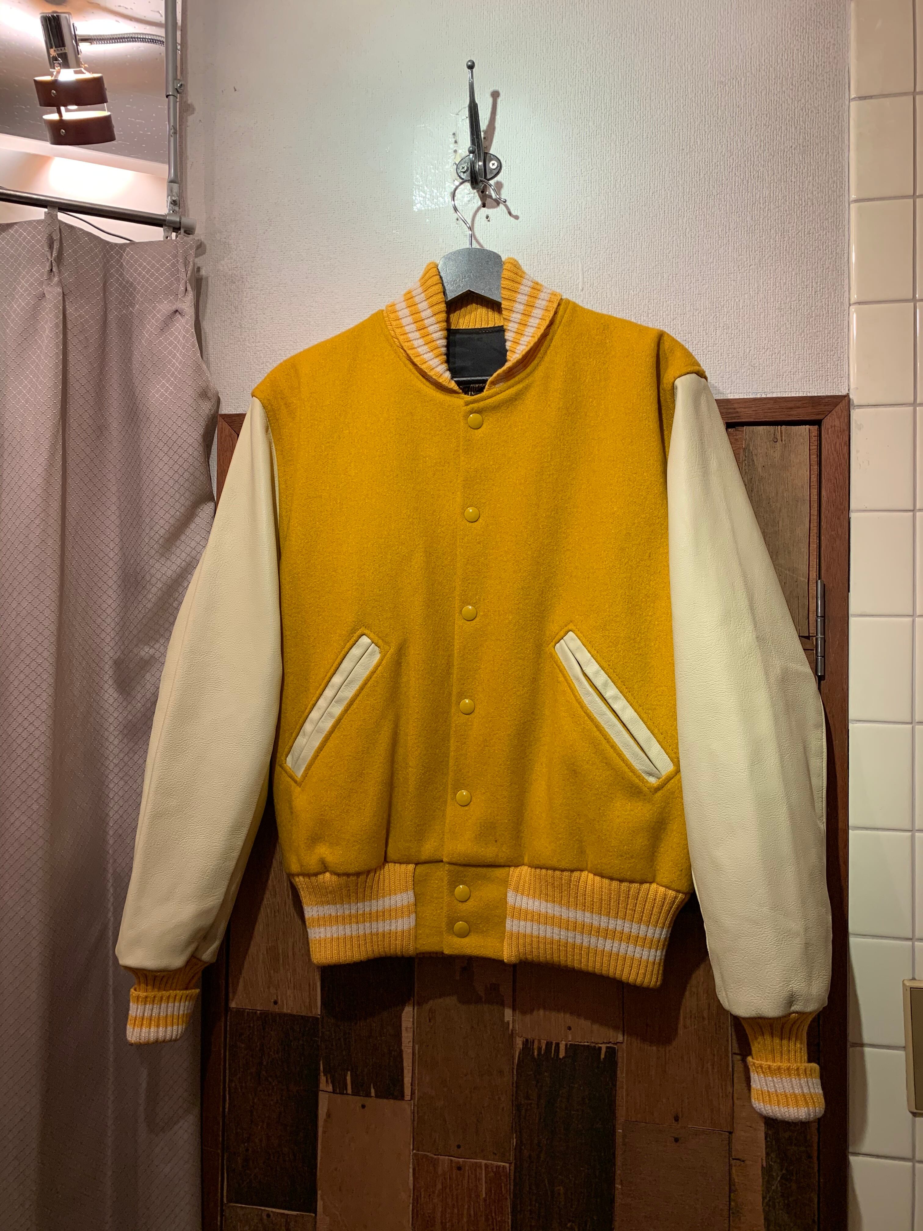 “SKOOKUM” yellow×ivory sleeve leather stadium jumper