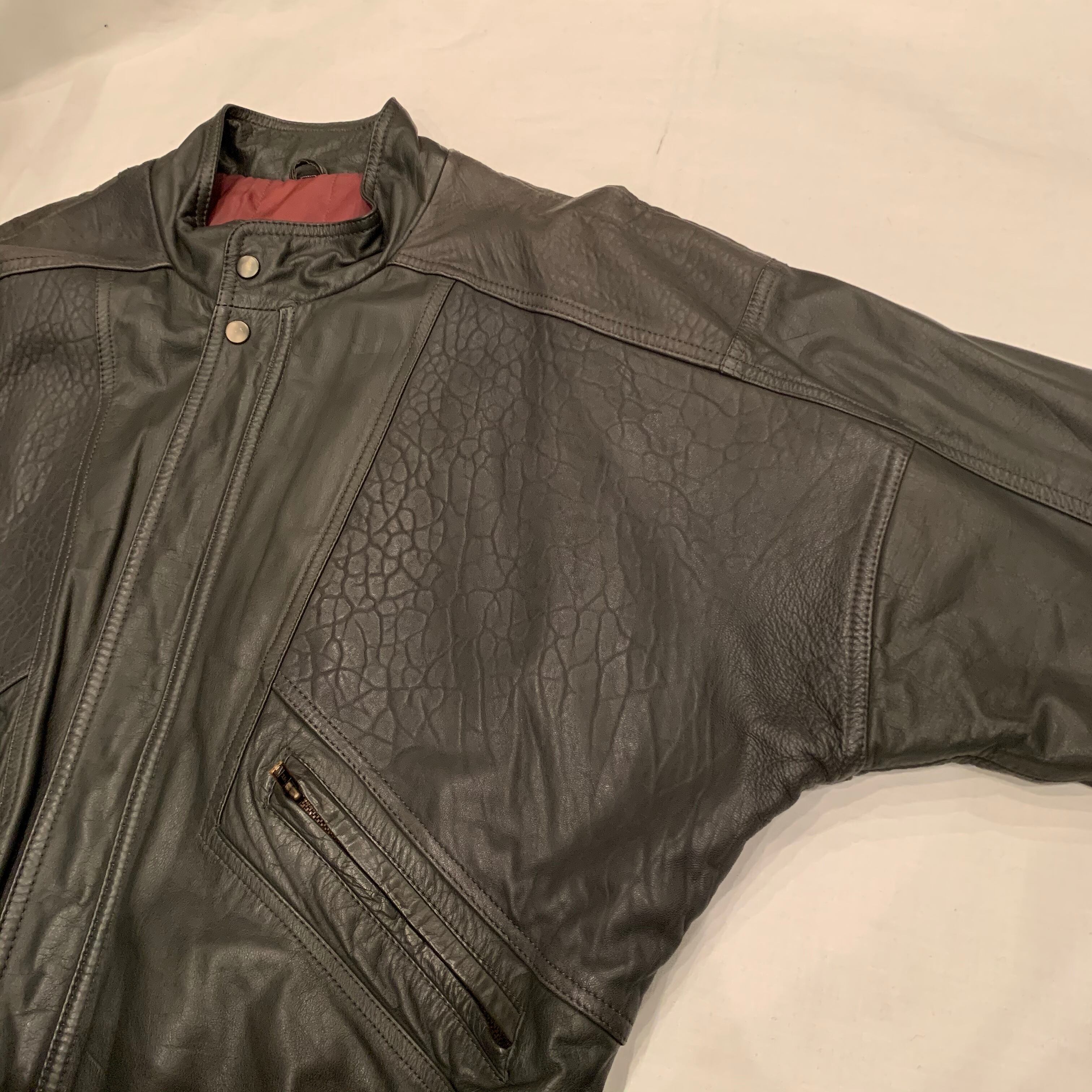 “Leather Bear” dark gray leather design zip&button blouson