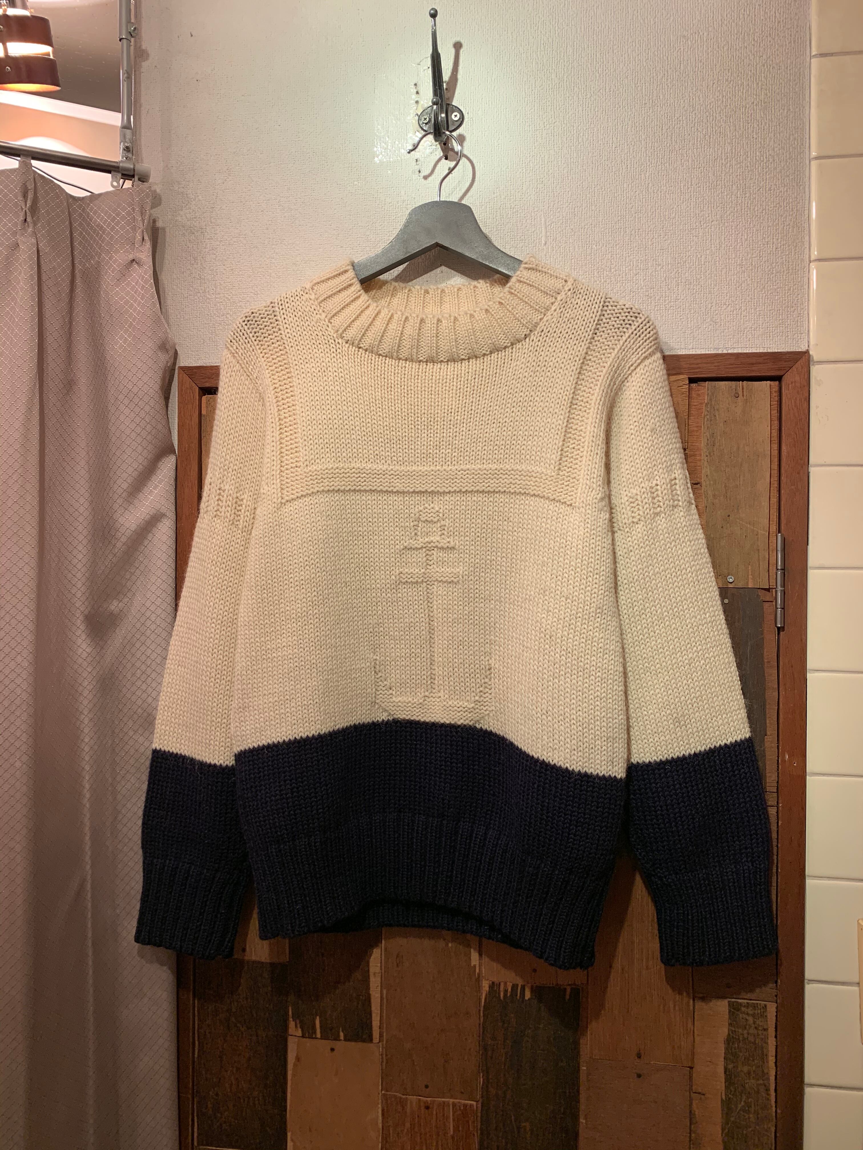 “Deck Hand” ivory×navy design Hand knit sweater