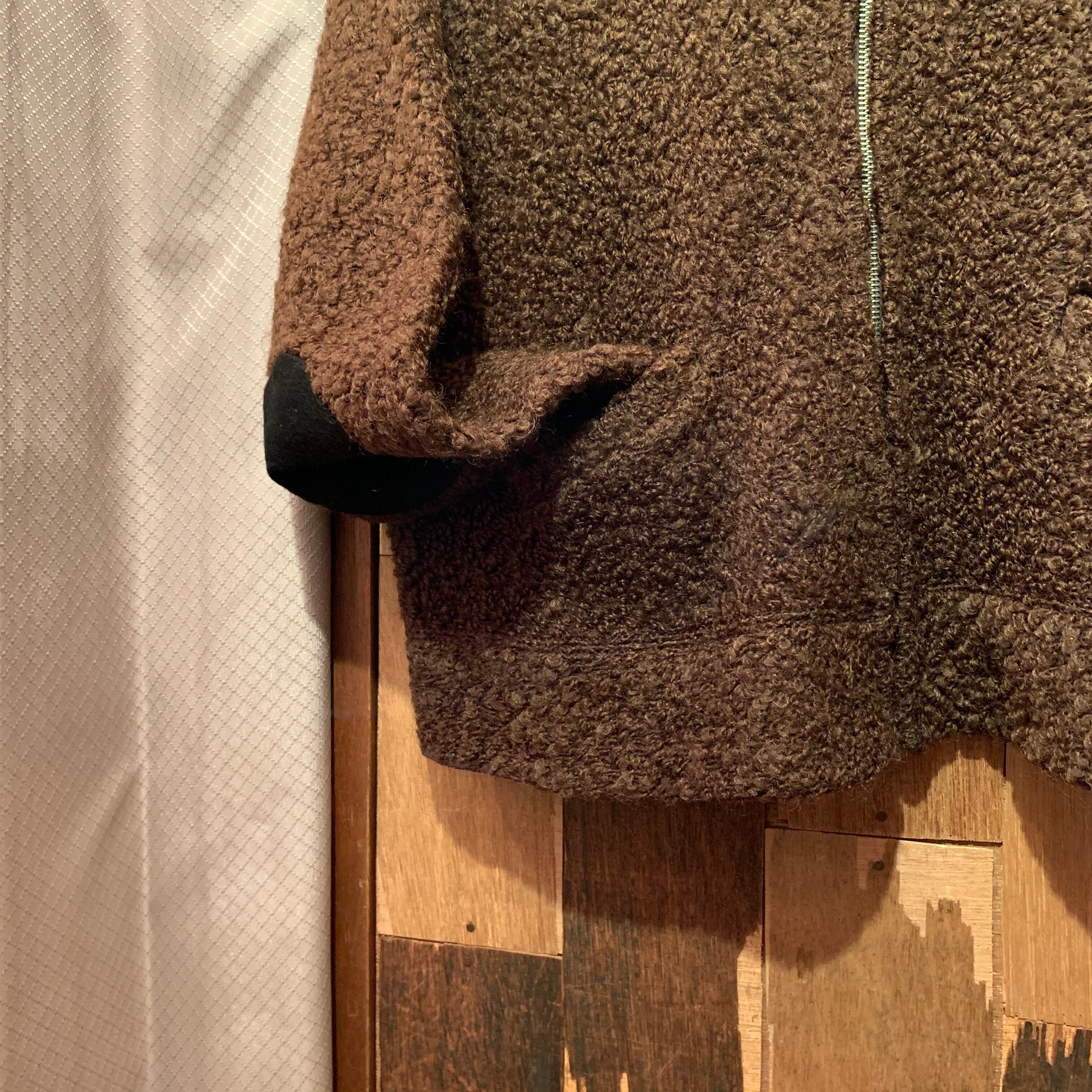 “HIGH LAND” 40’s~50’s vintage dark brown astrakhan wool elbow patch design zip-up knit blouson