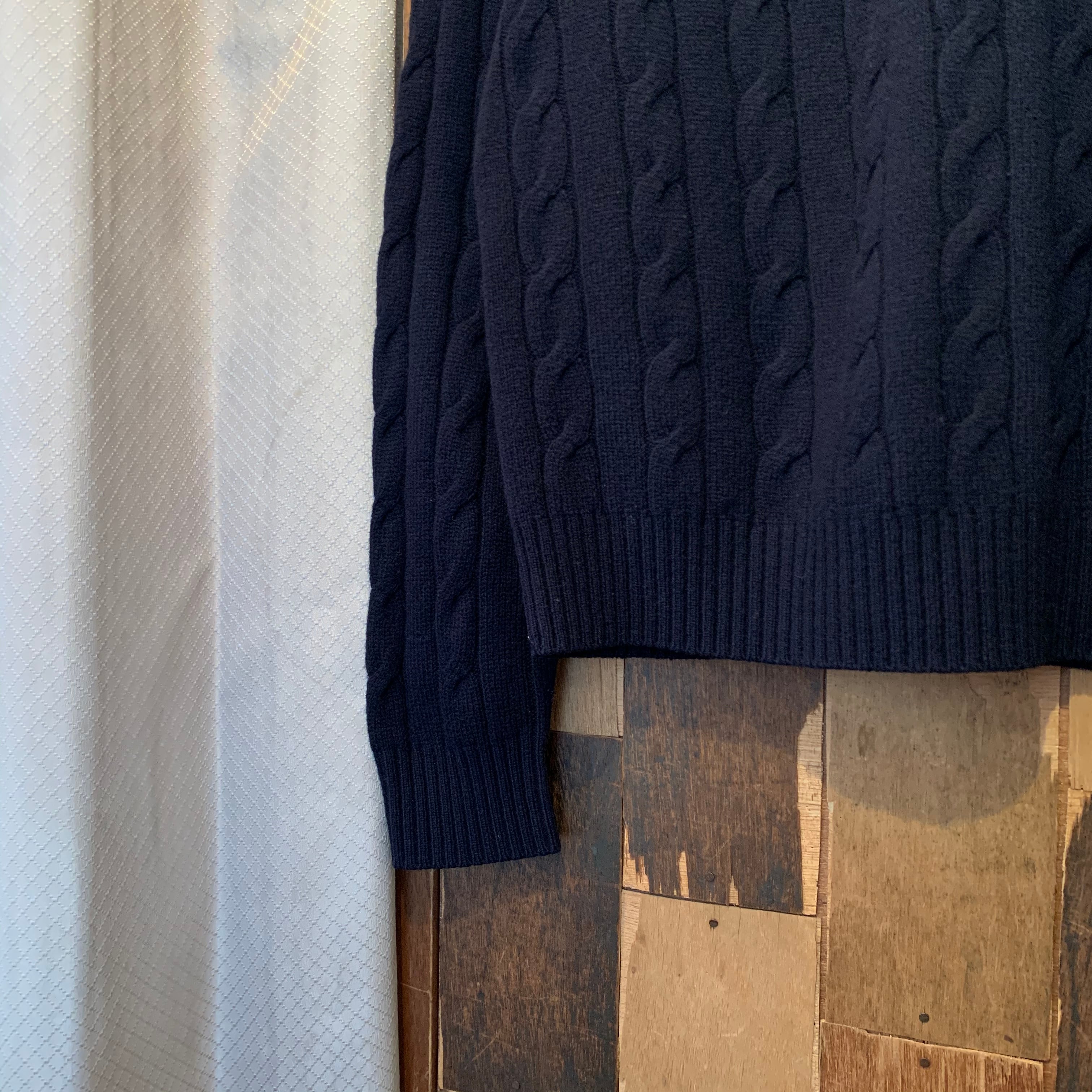 “Brooks Brothers” navy wool/cashmere cable knit sweater