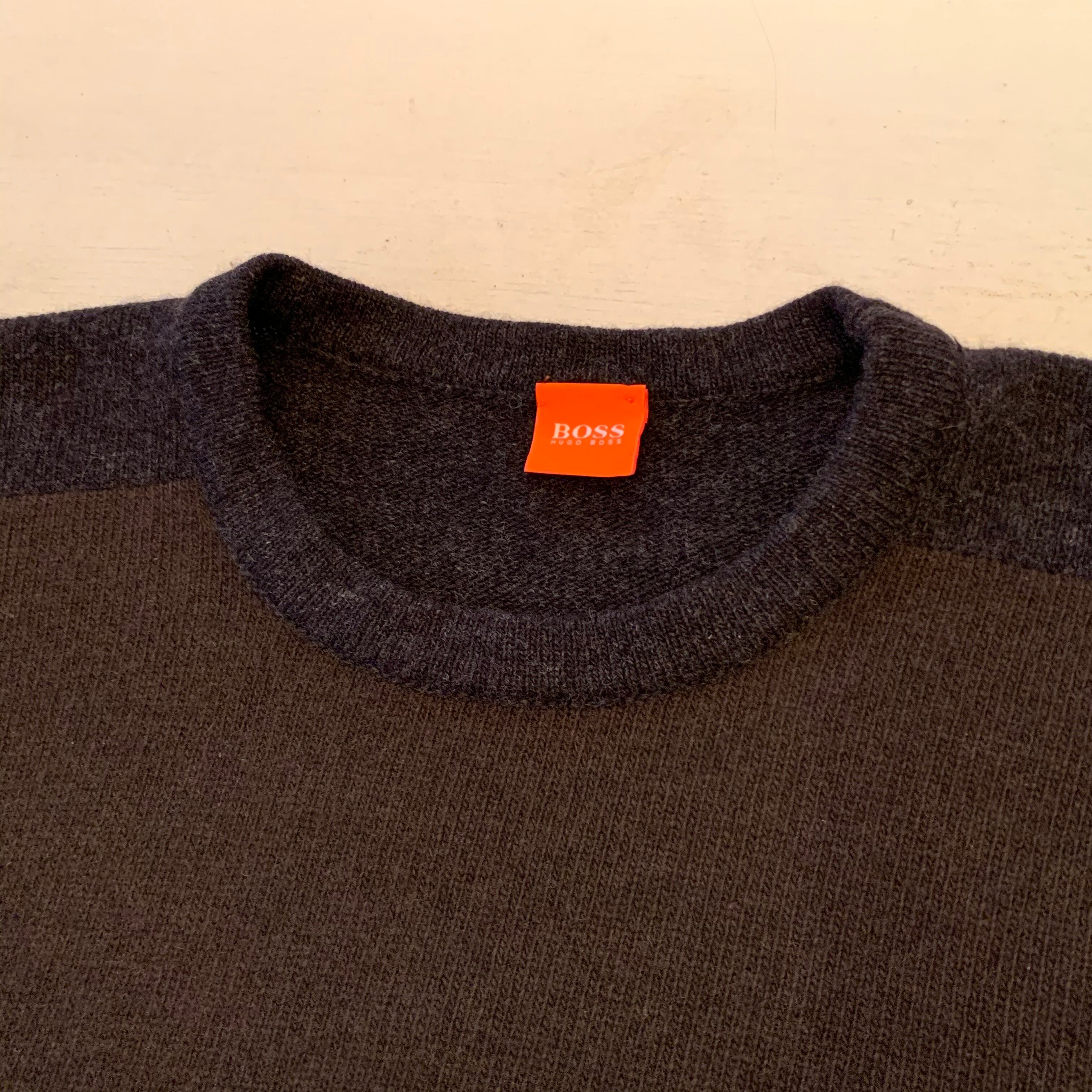 “HUGO BOSS” charcoal brown×charcoal gray design knit sweater