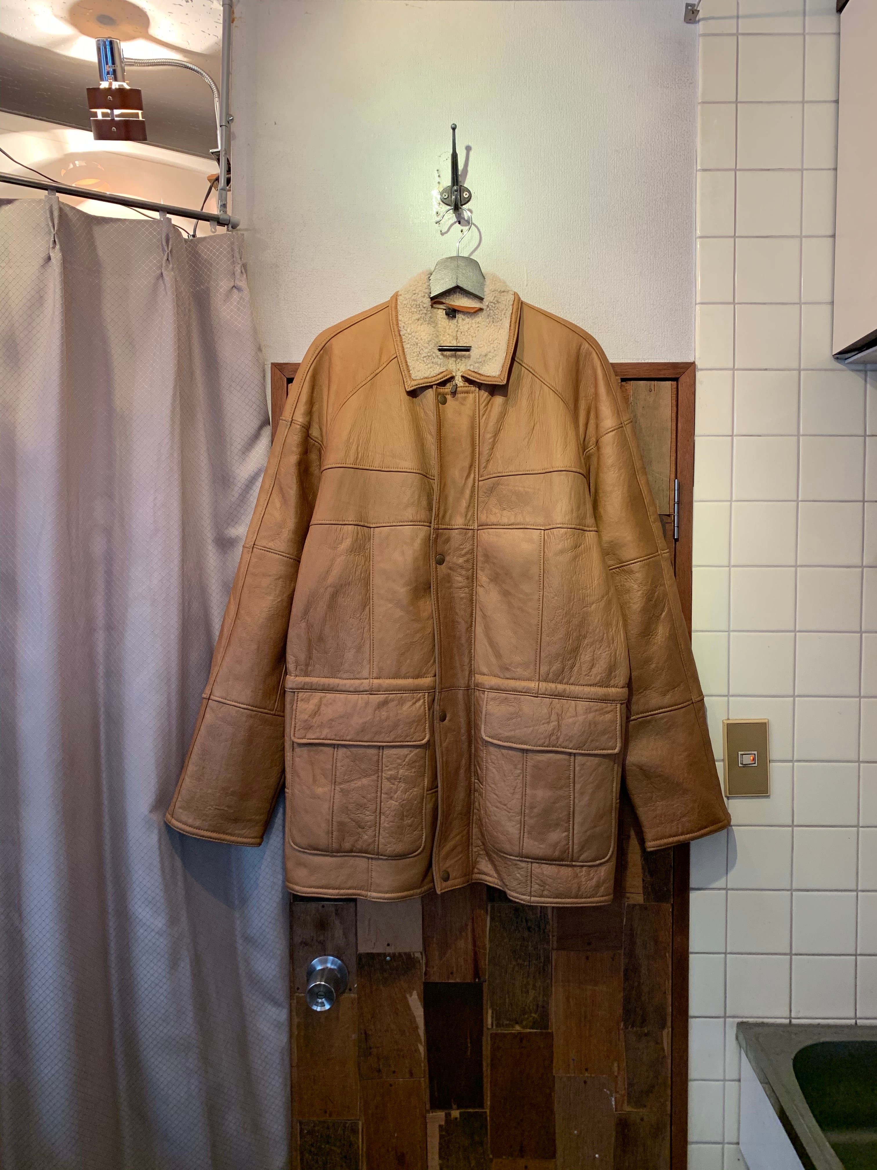 “KNIGHT OF NEWZEALAND” camel zip&button design mouton half-coat