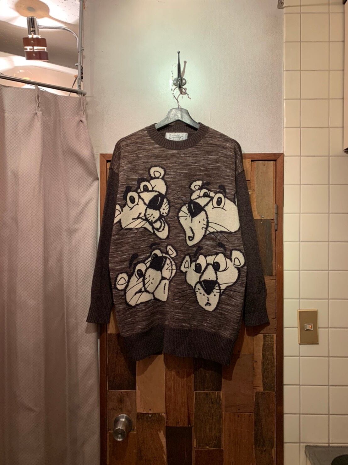 “CASTELBAJAC” chacoal brown wool/nylon character pattern knit sweater