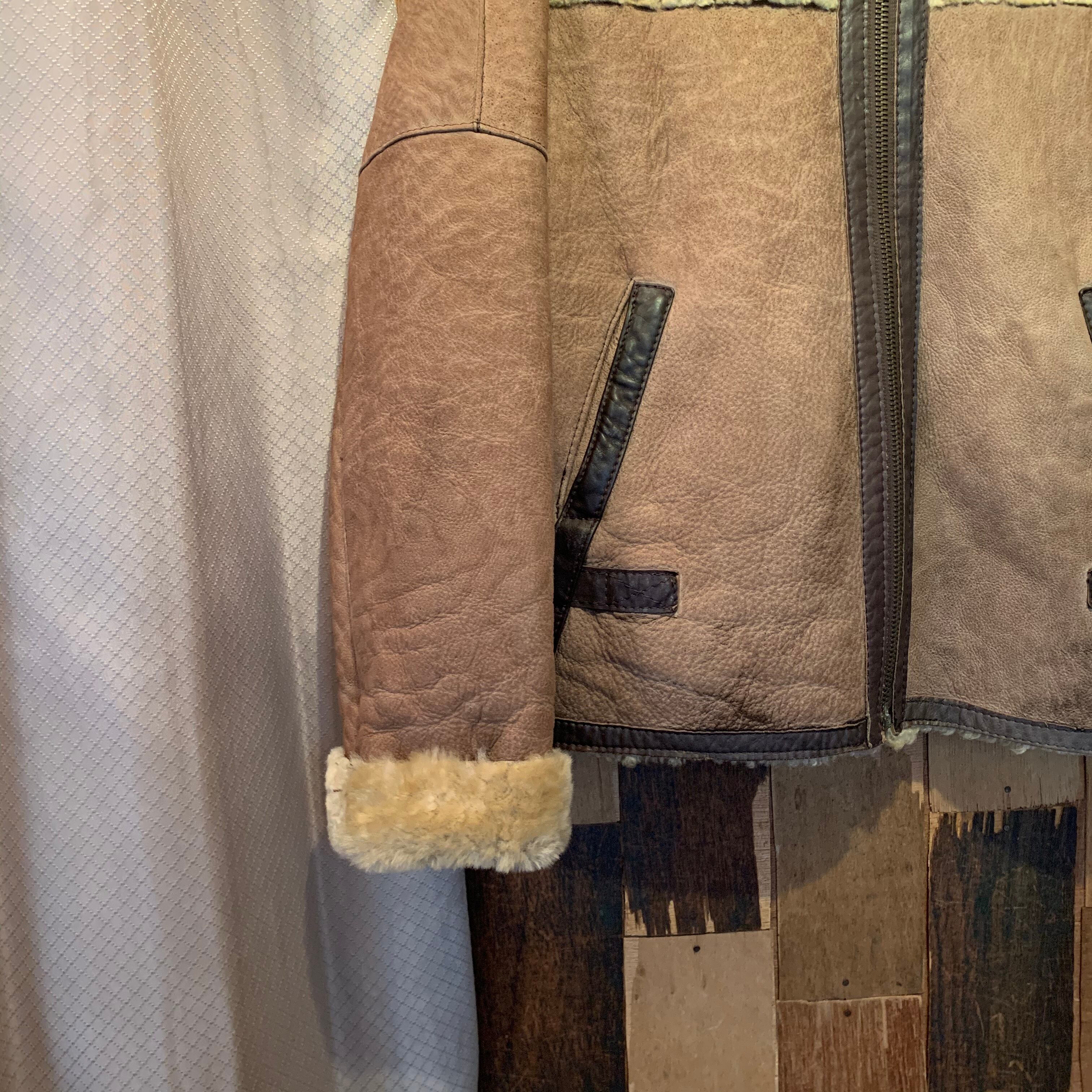 “Bomb Boogie” light brown design zip-up mouton jacket