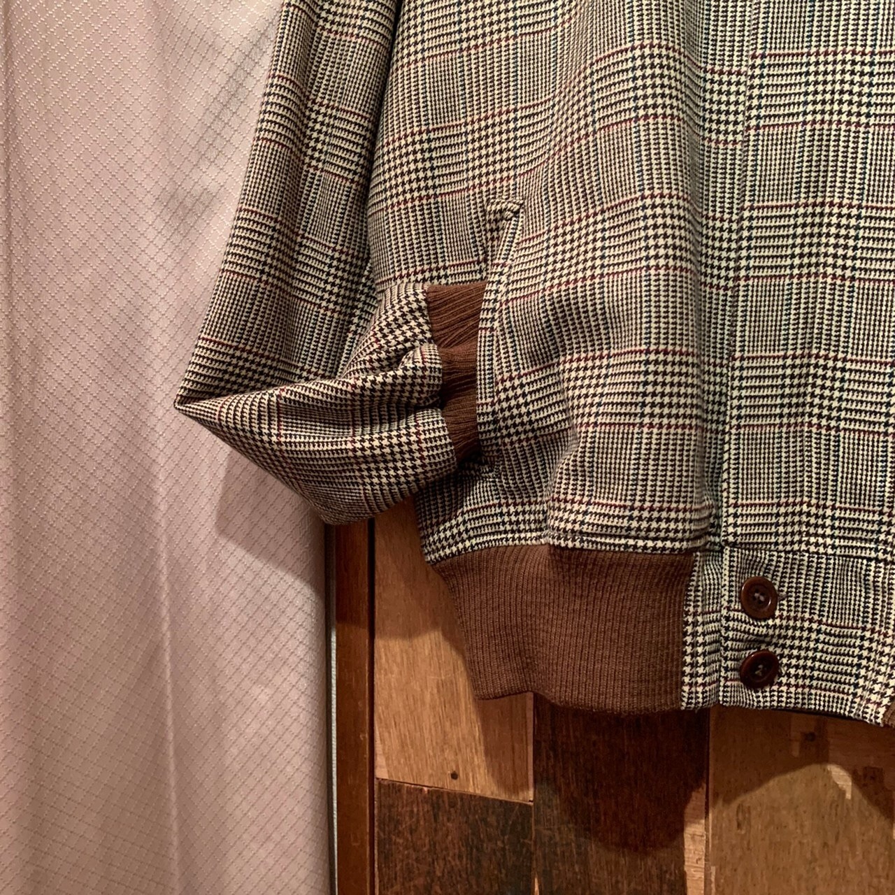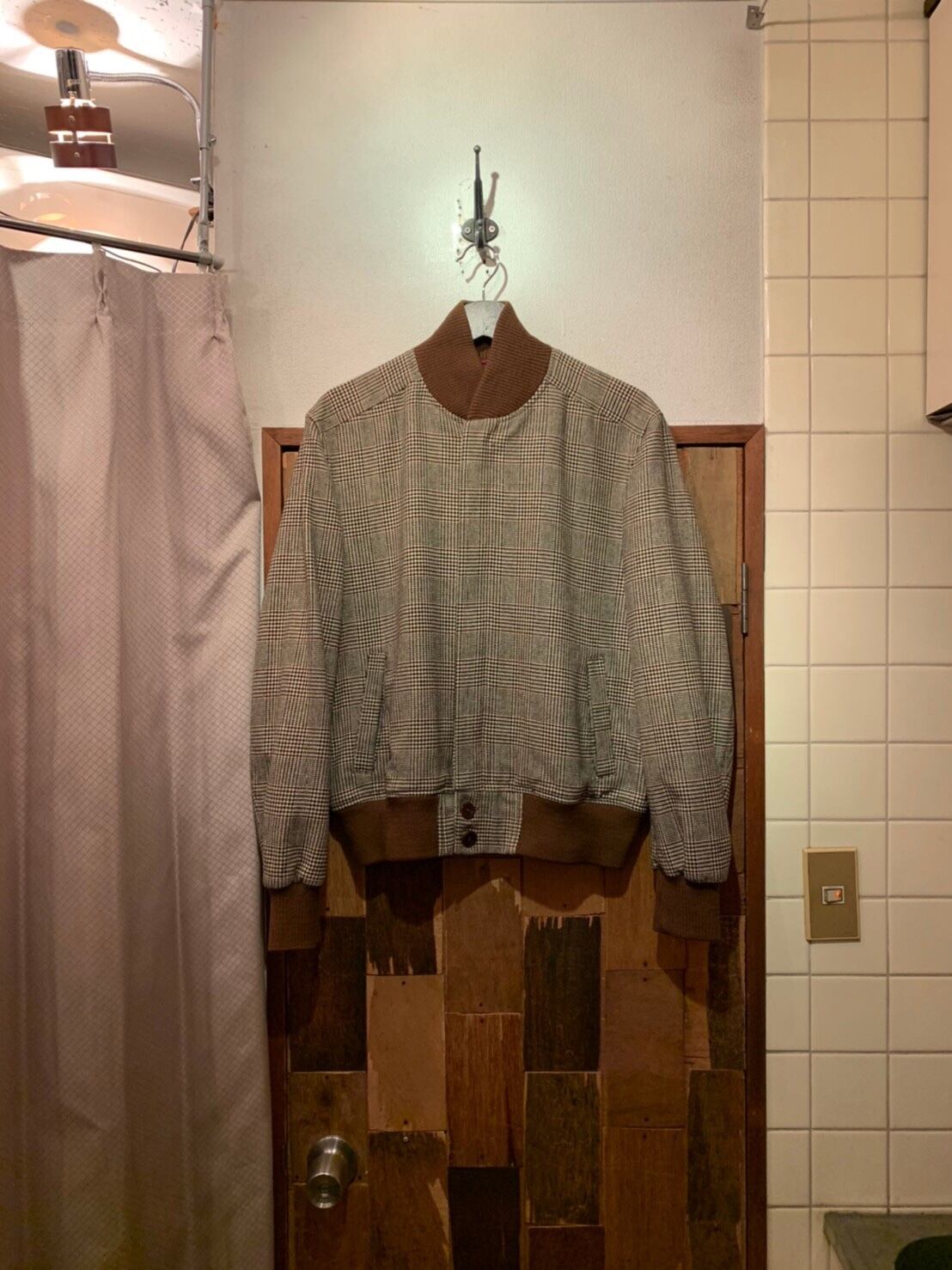 “DUFFER” ivory base×brown wool glen check pattern zip-up design blouson