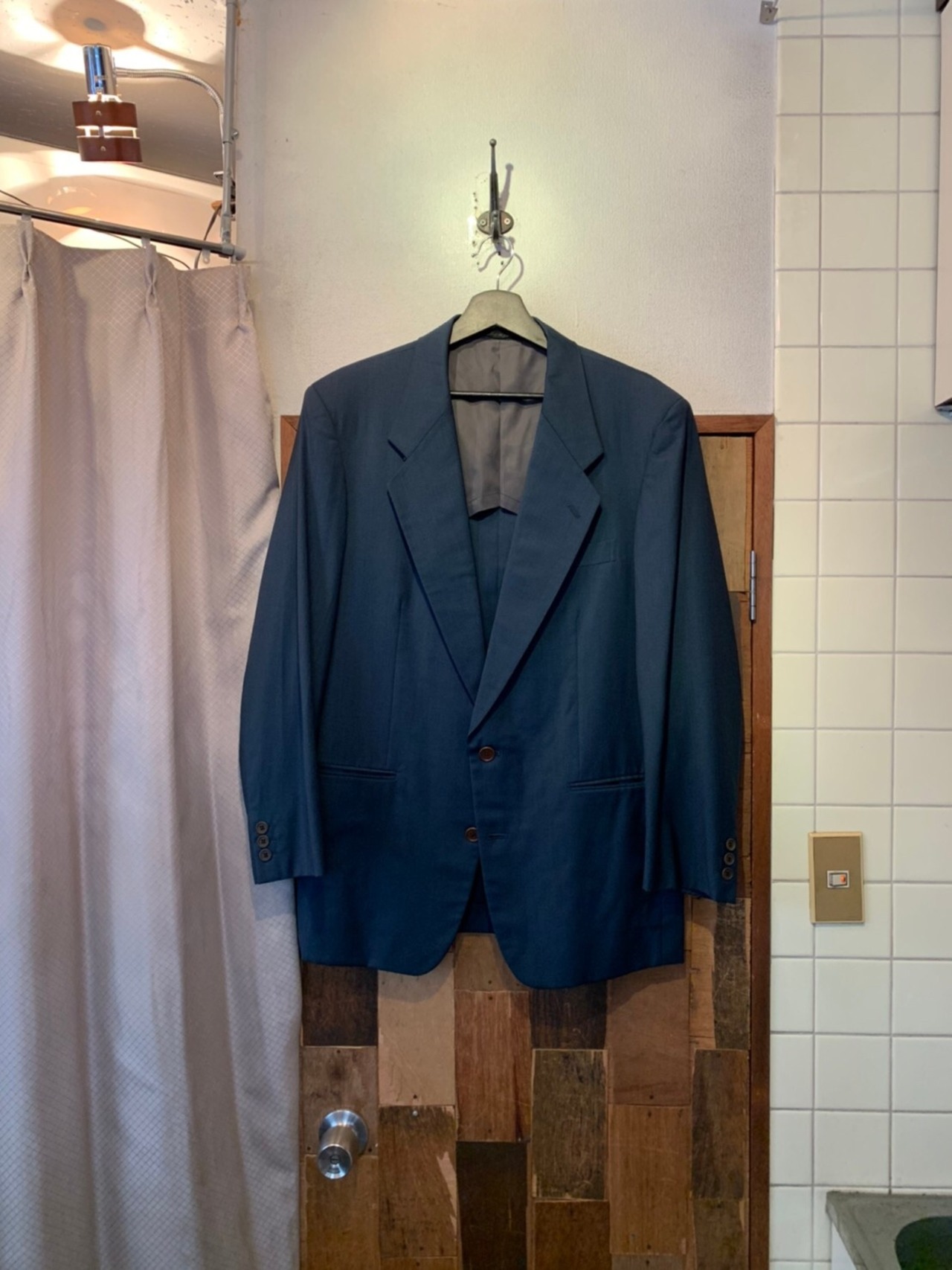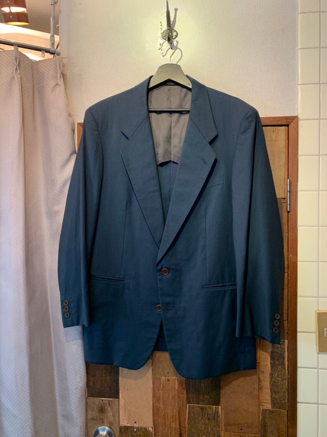 “BARBICHE” turquoise blue wool 2B tailored JKT×2tuck slacks 2piece setup