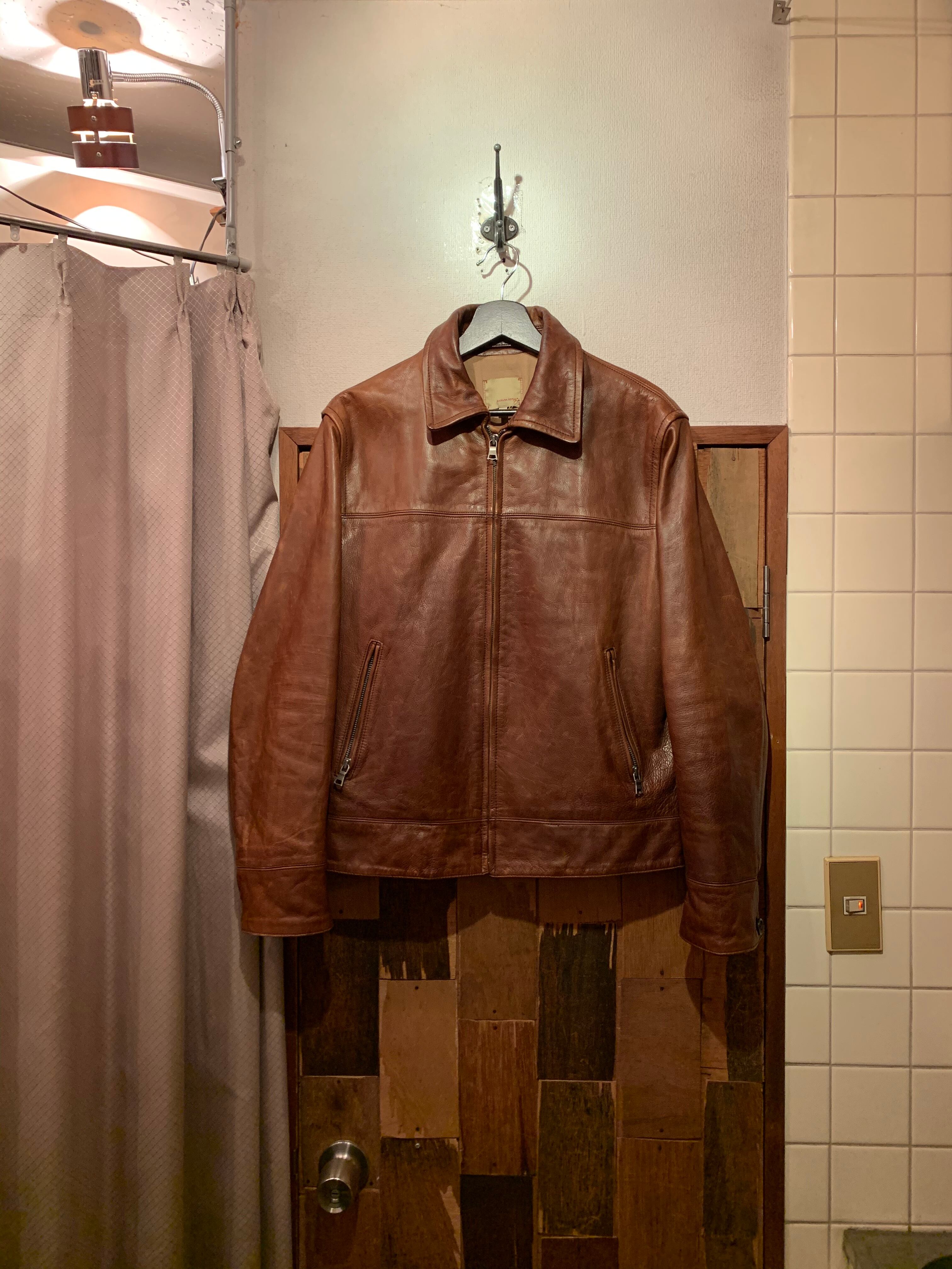 “BANANA REPUBLIC” brown cow leather zip-up design jacket