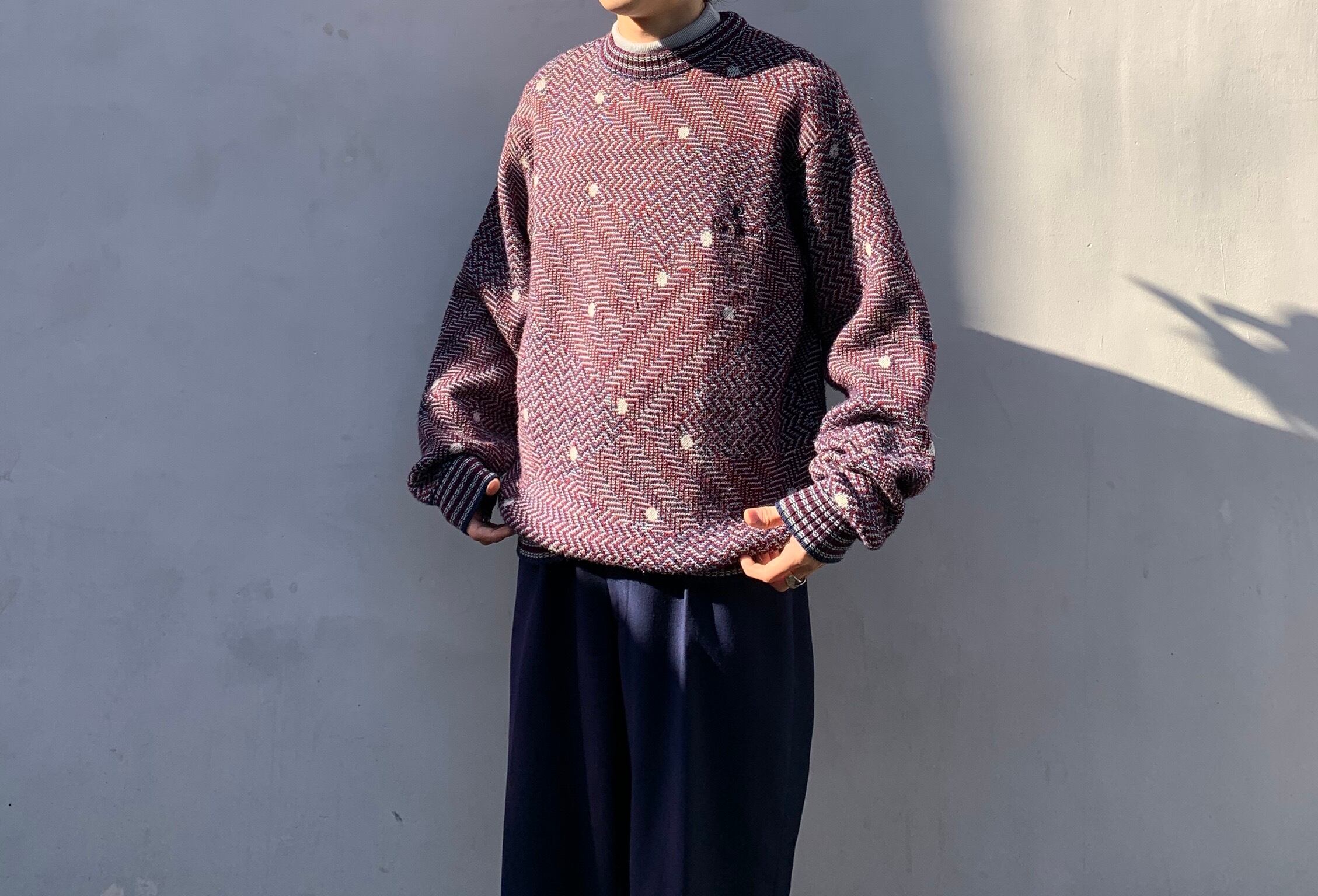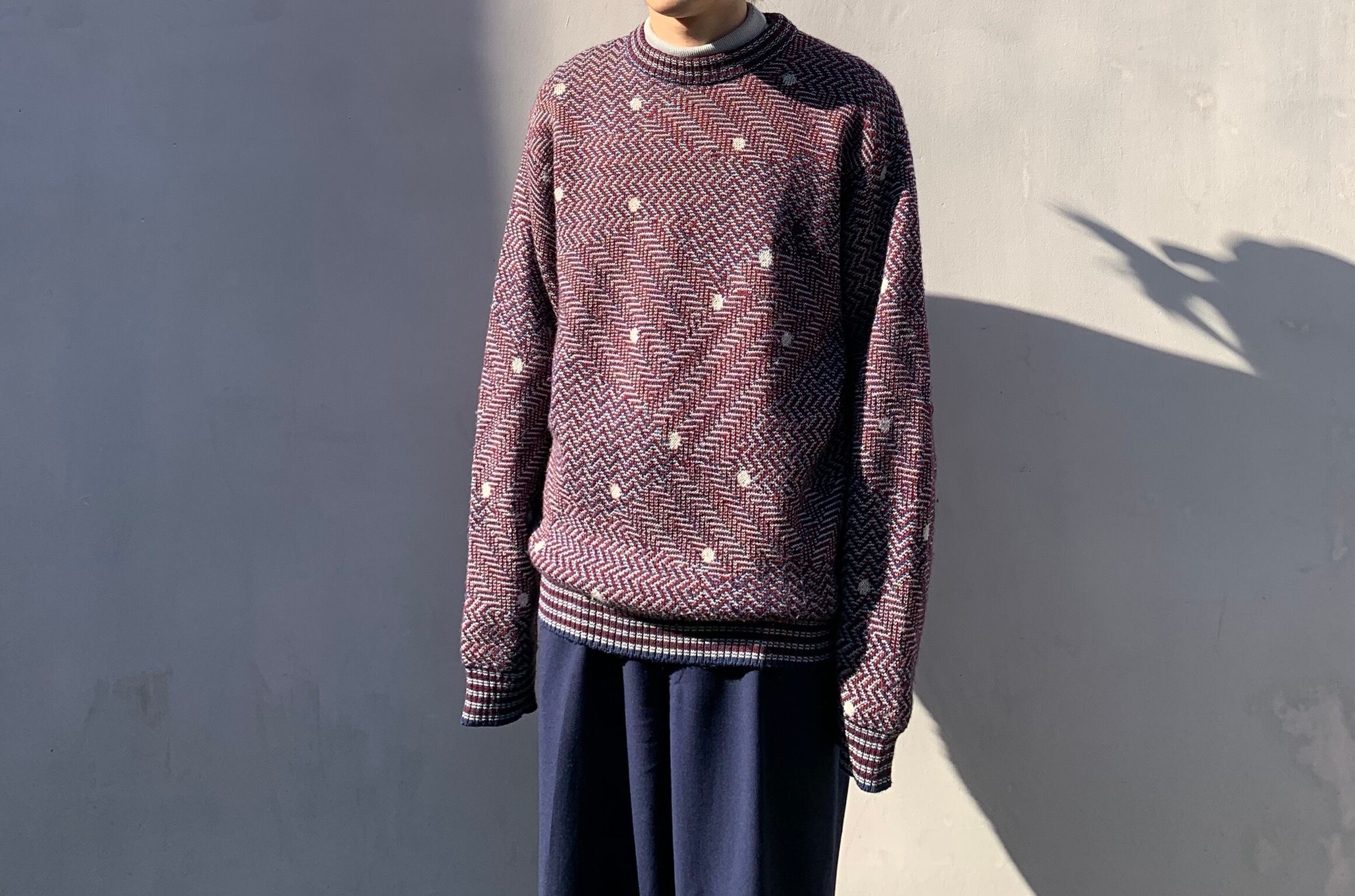 “Pierre cardin” multi color wool/acrylic unique pattern knit sweater