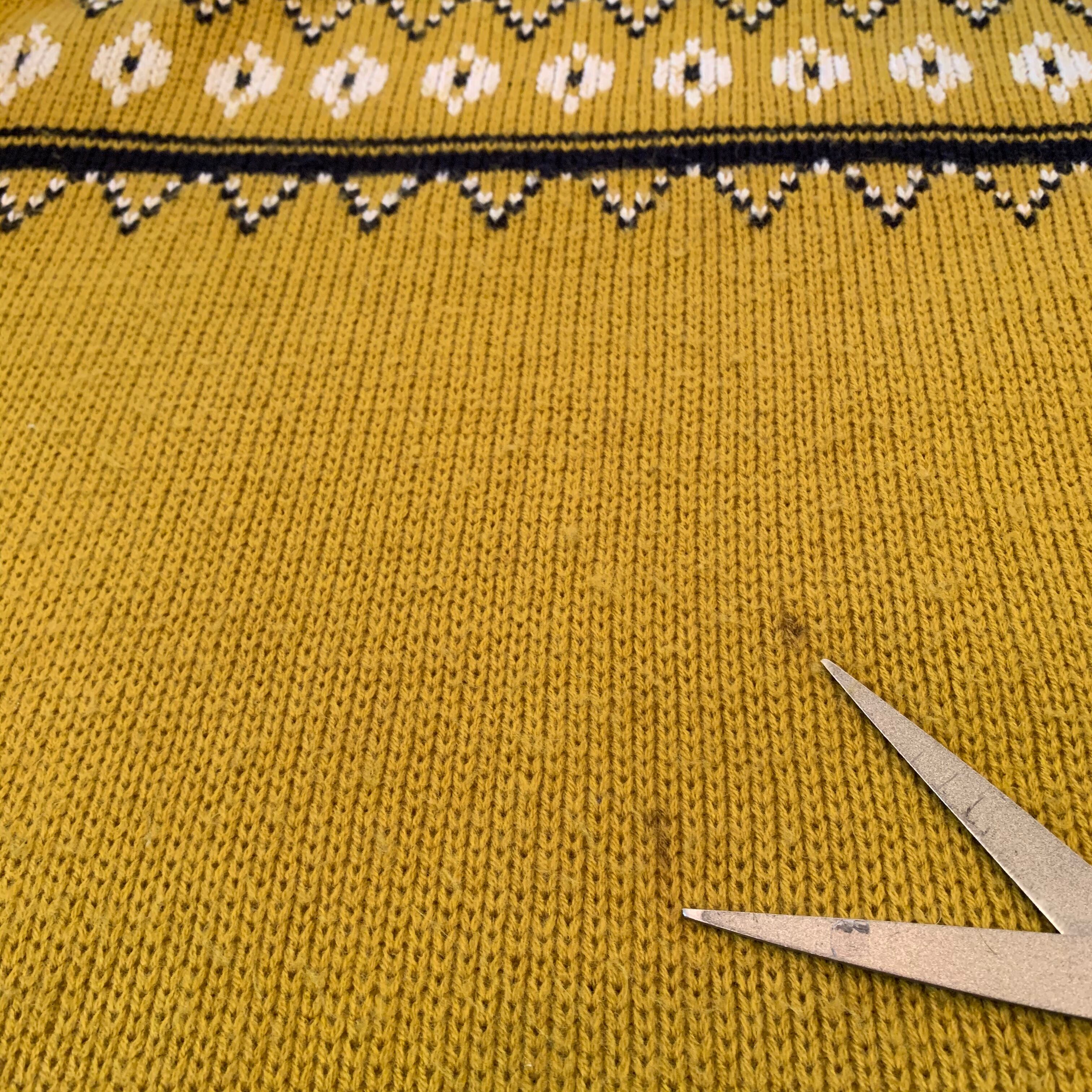 “mancraft” 70’s~vintage dark navy×mustard acrylic Nordic pattern knit sweater