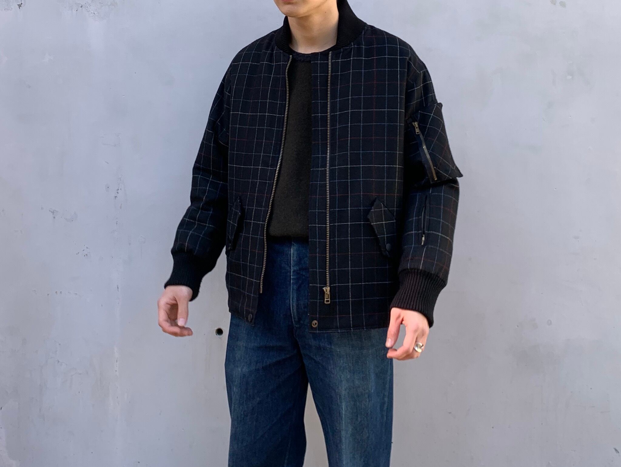 “HYSTERIC GLAMOUR” black windowpane design zip-up padding blouson