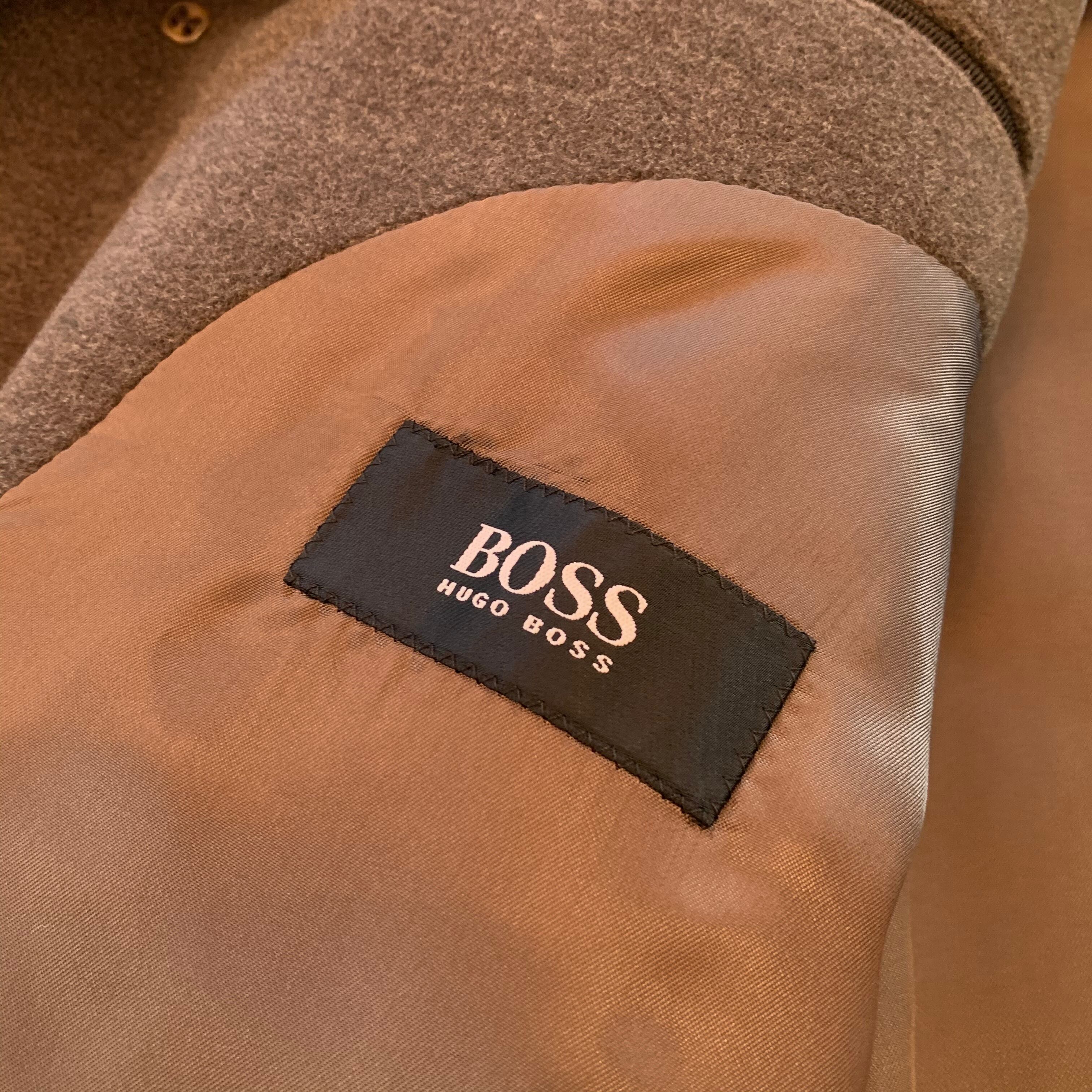 “HUGO BOSS” charcoal khaki 2way-collar long coat