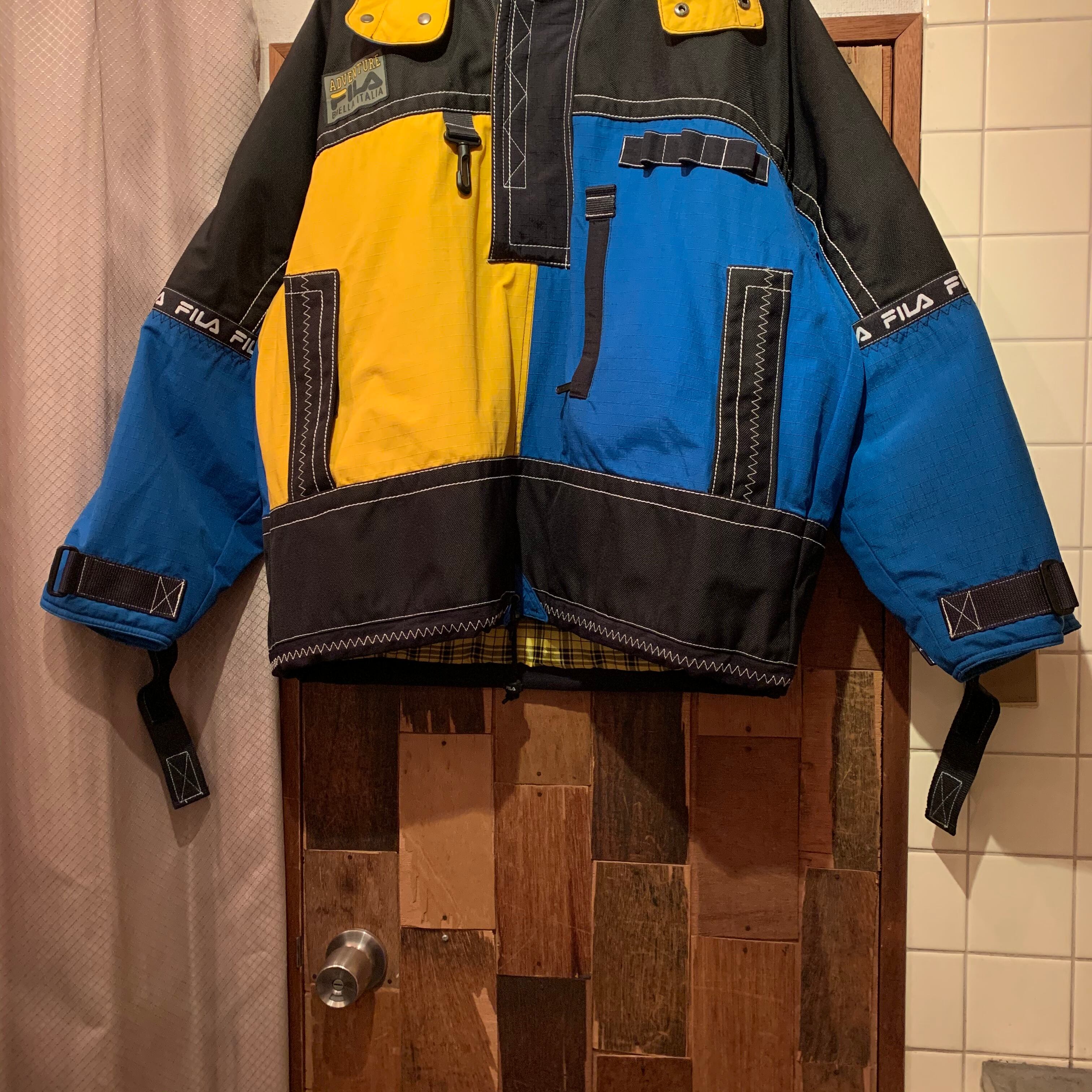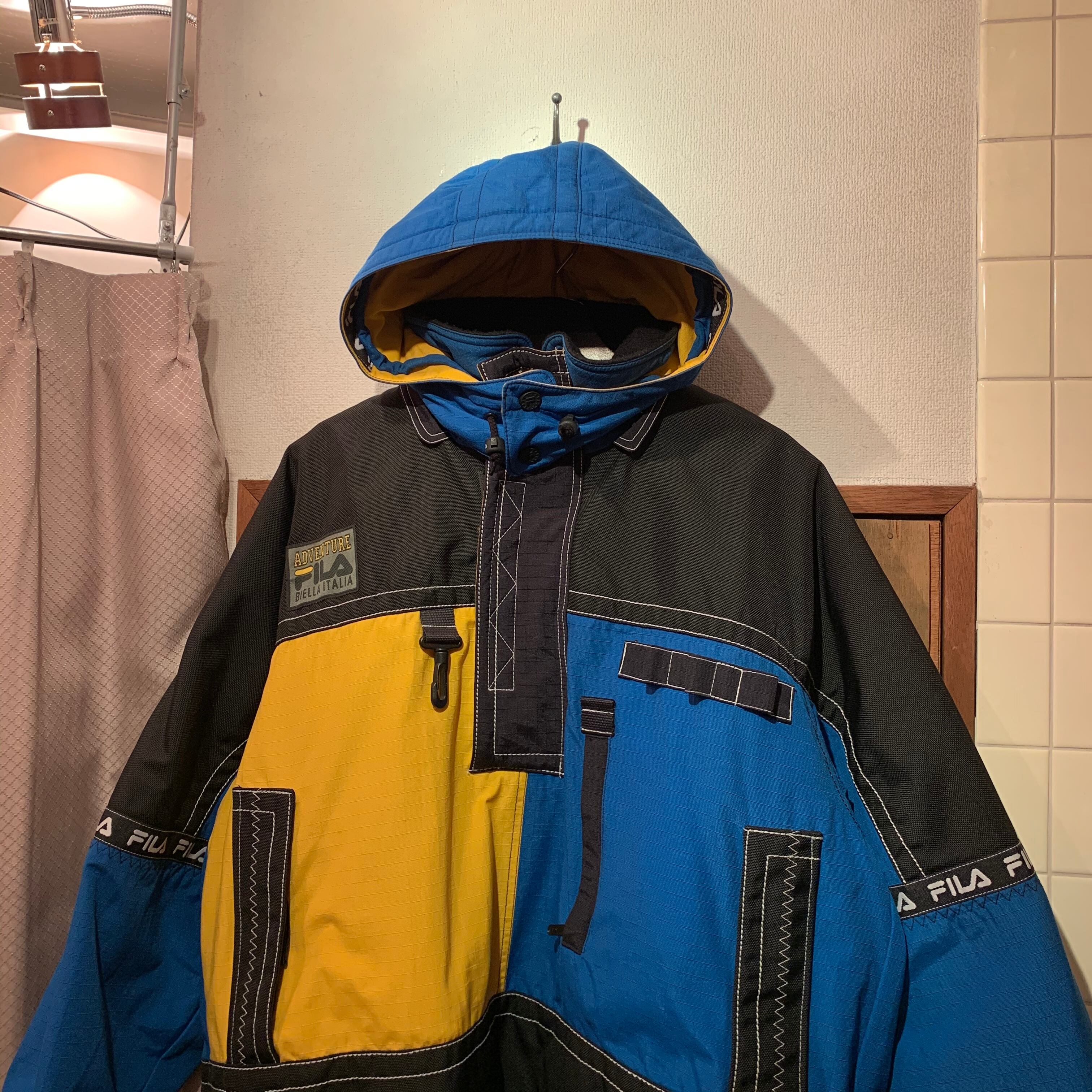 “FILA” 90’s black×yellow×blue half-zip&velcro design pullover ski jacket