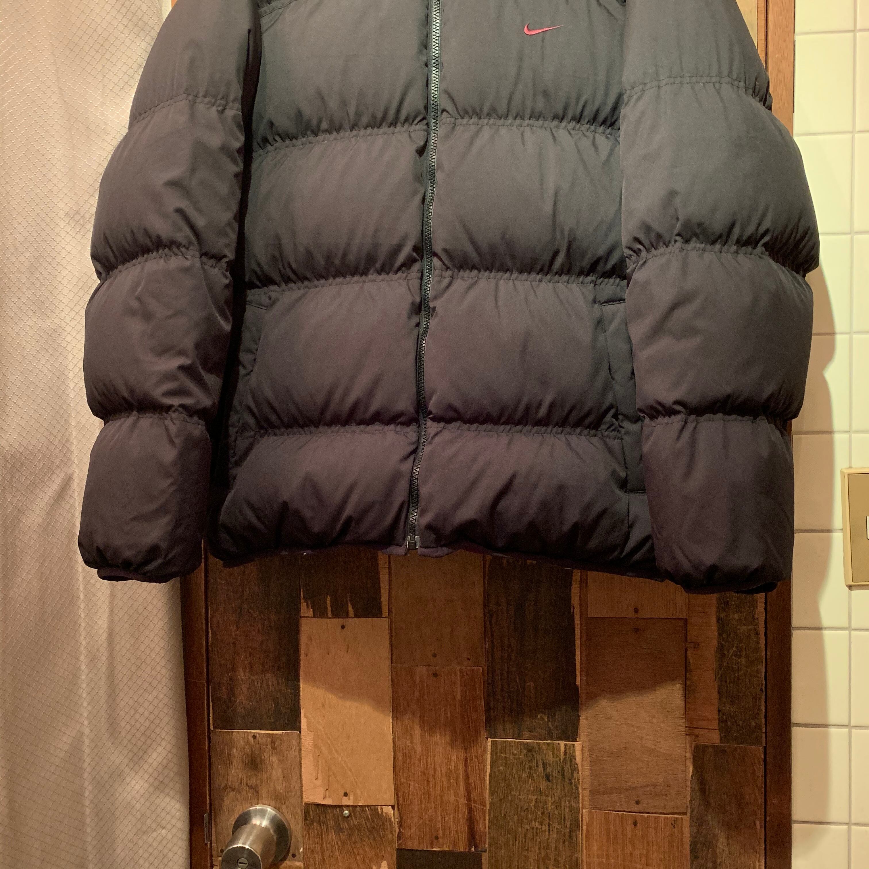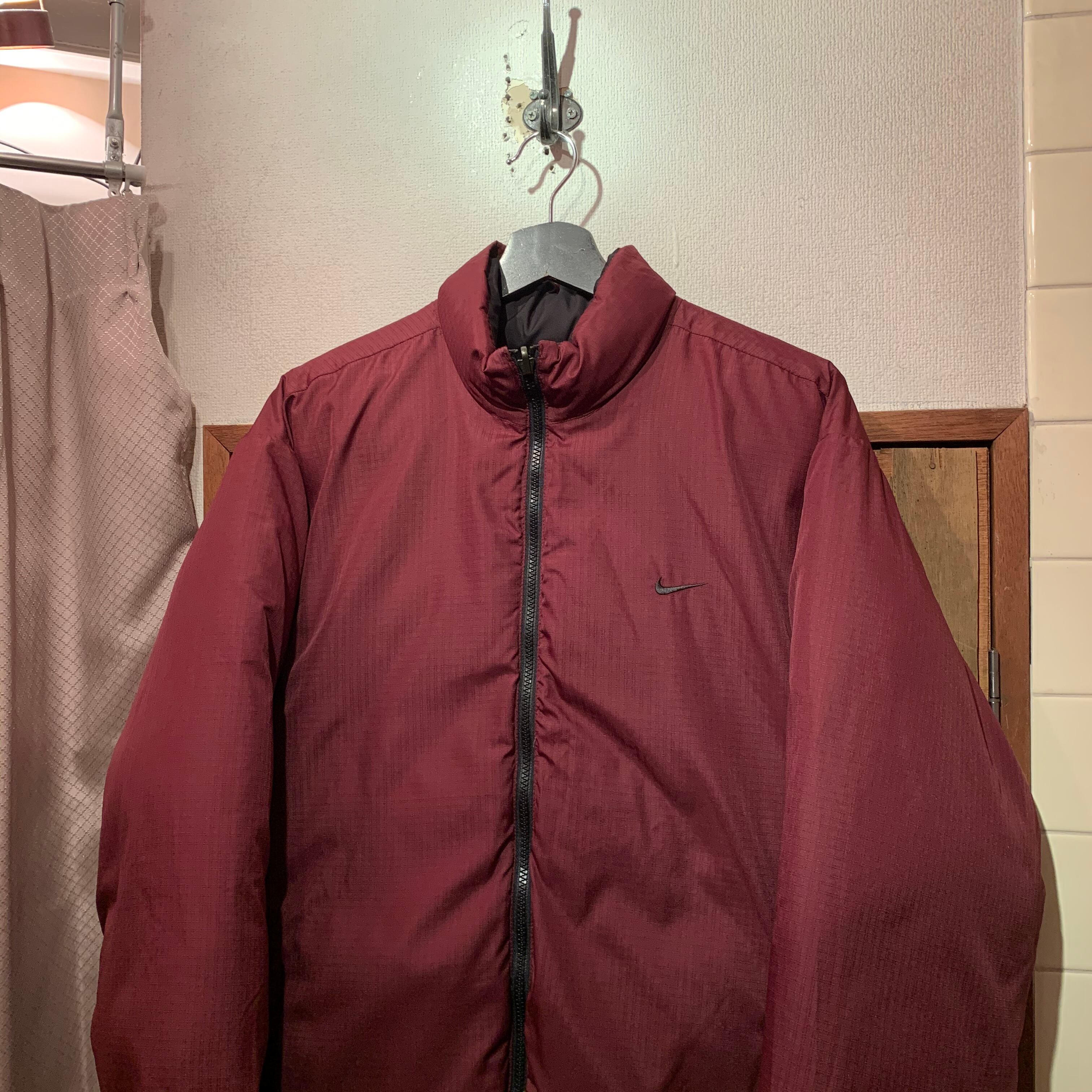 “NIKE” 90’s~00’s black×wine red point logo design zip-up Reversible down jacket