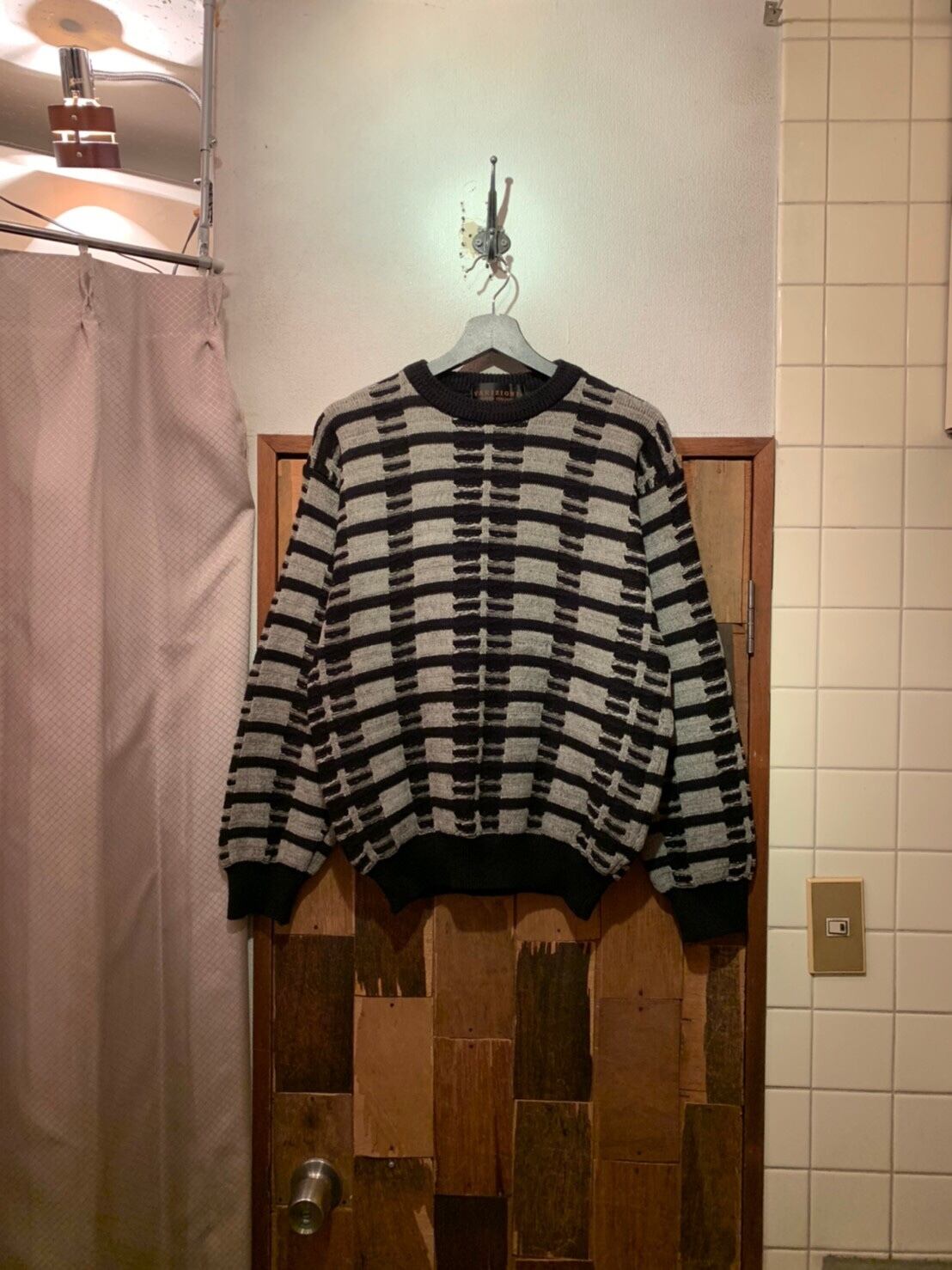 “VARIZIONI” black×light gray wool/acrylic/nylon unique pattern knit sweater