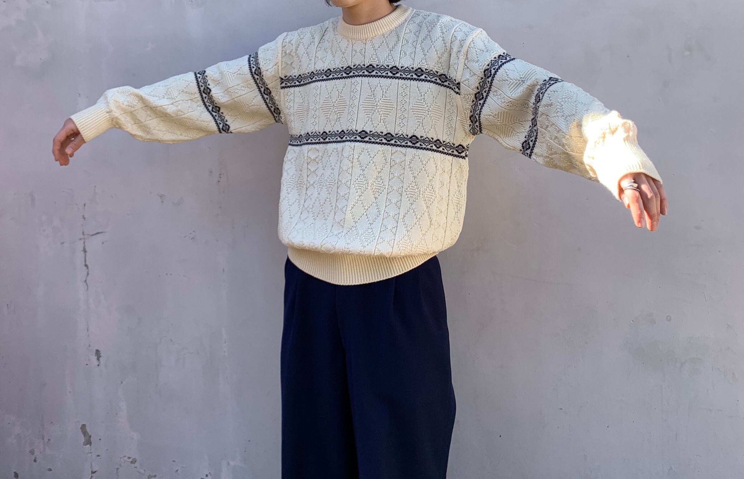 “MEN’S IF INTERNATIONAL” ivory design knit sweater