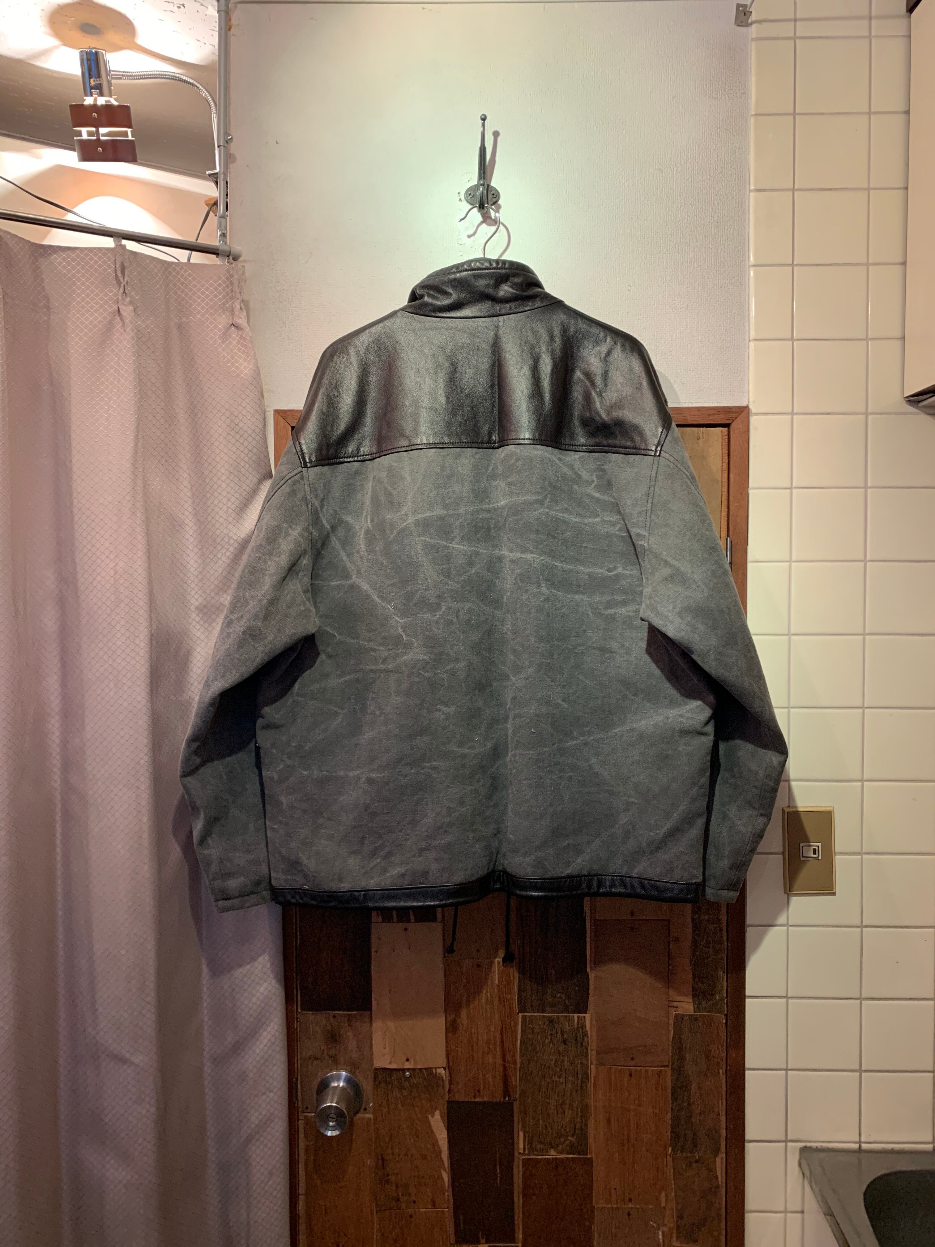“VIA NUOVA” gray duck×leather switch design zip&button stand-collar jacket