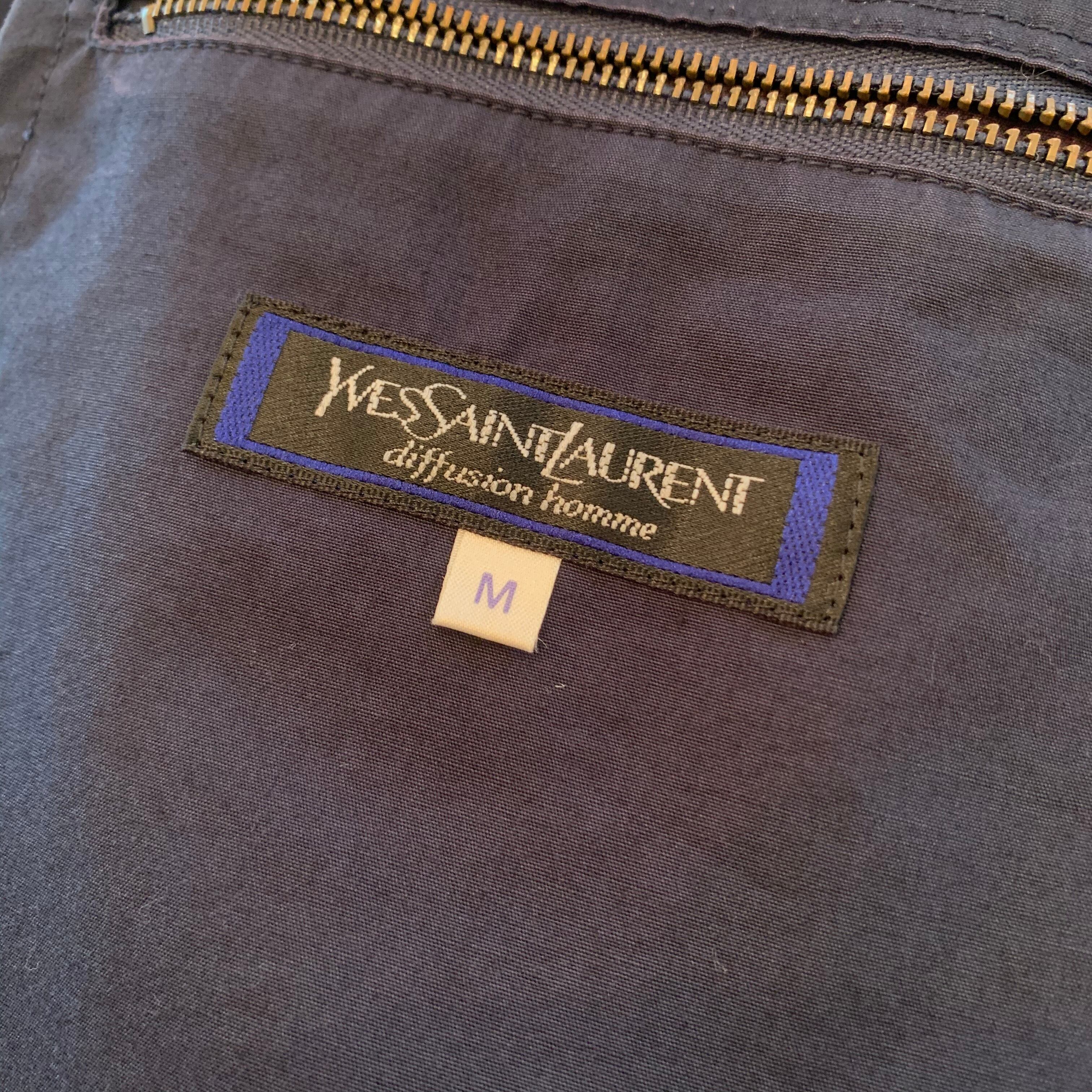 “YVES SAINT LAURENT” 90’s navy zip-up design hooded coat