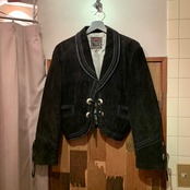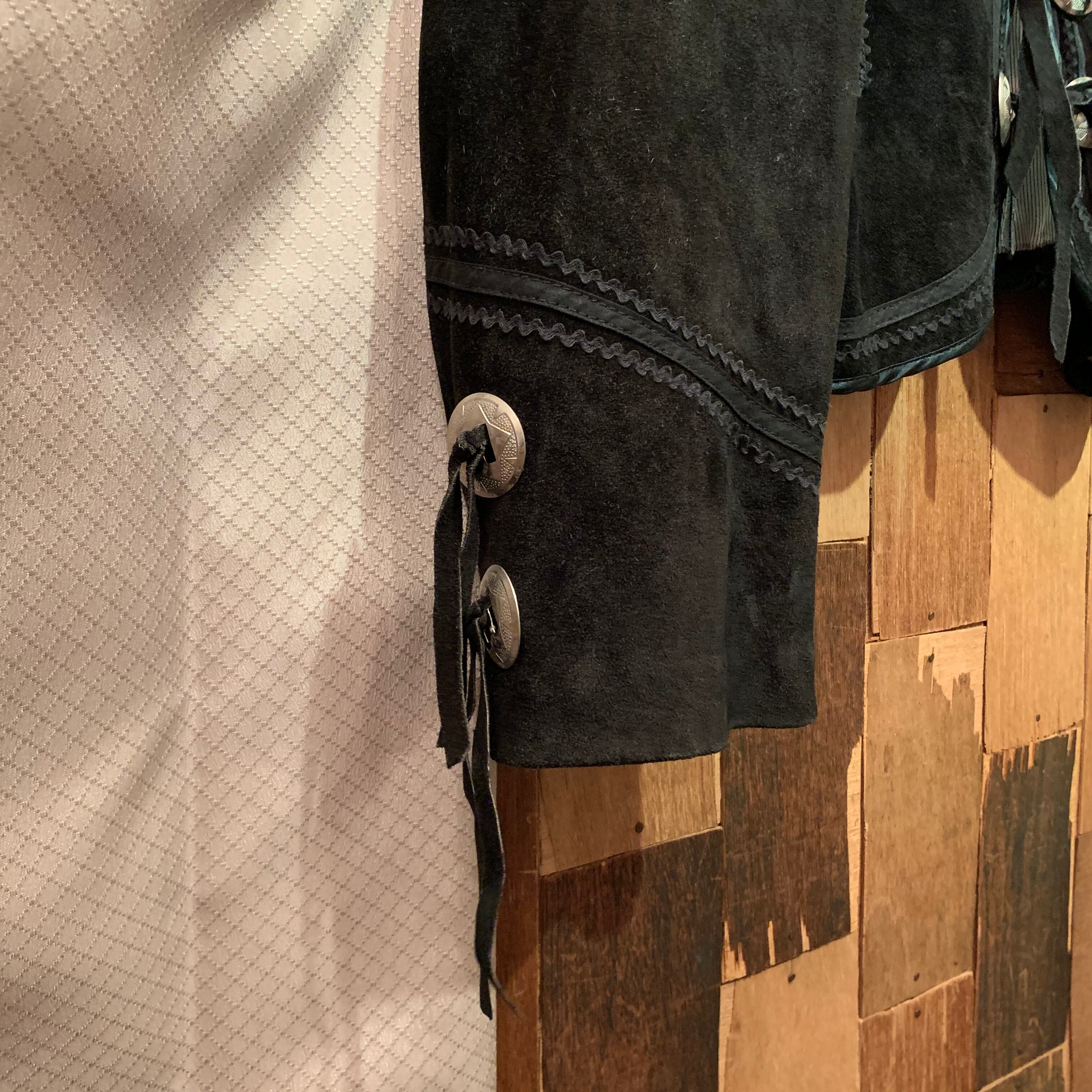 “AZTECA” black suede concho&fringe design short-length jacket