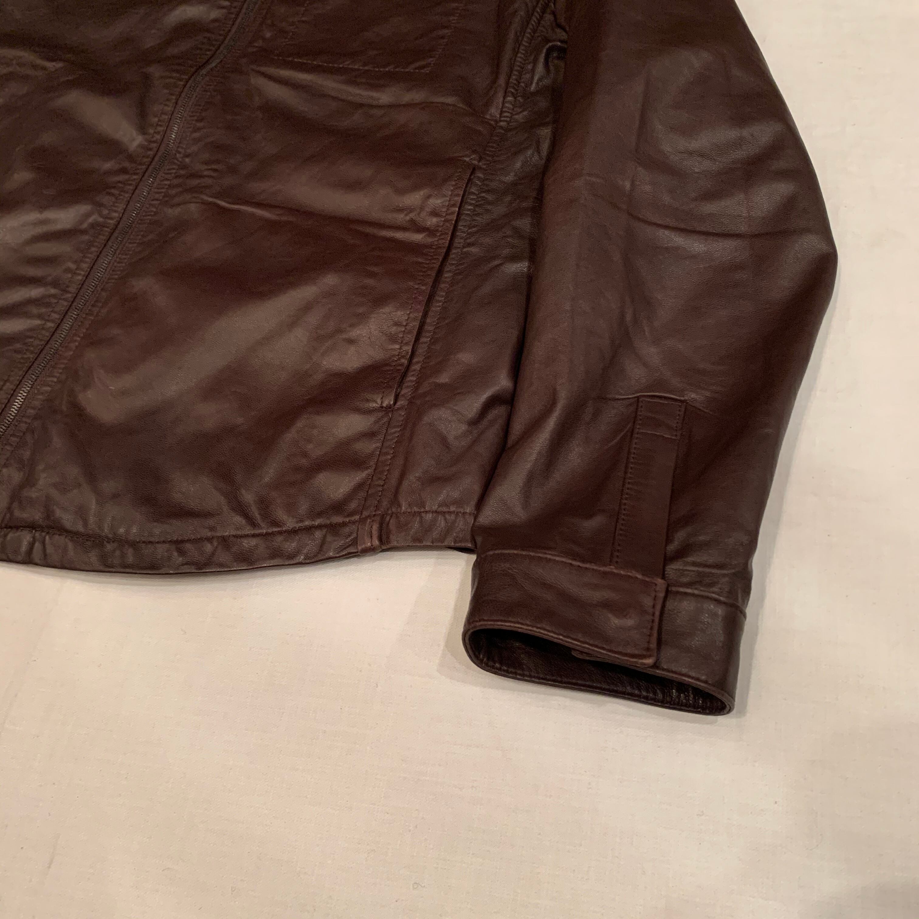 “BARNEYS NEW YORK” dark brown sheep leather zip-up design jacket