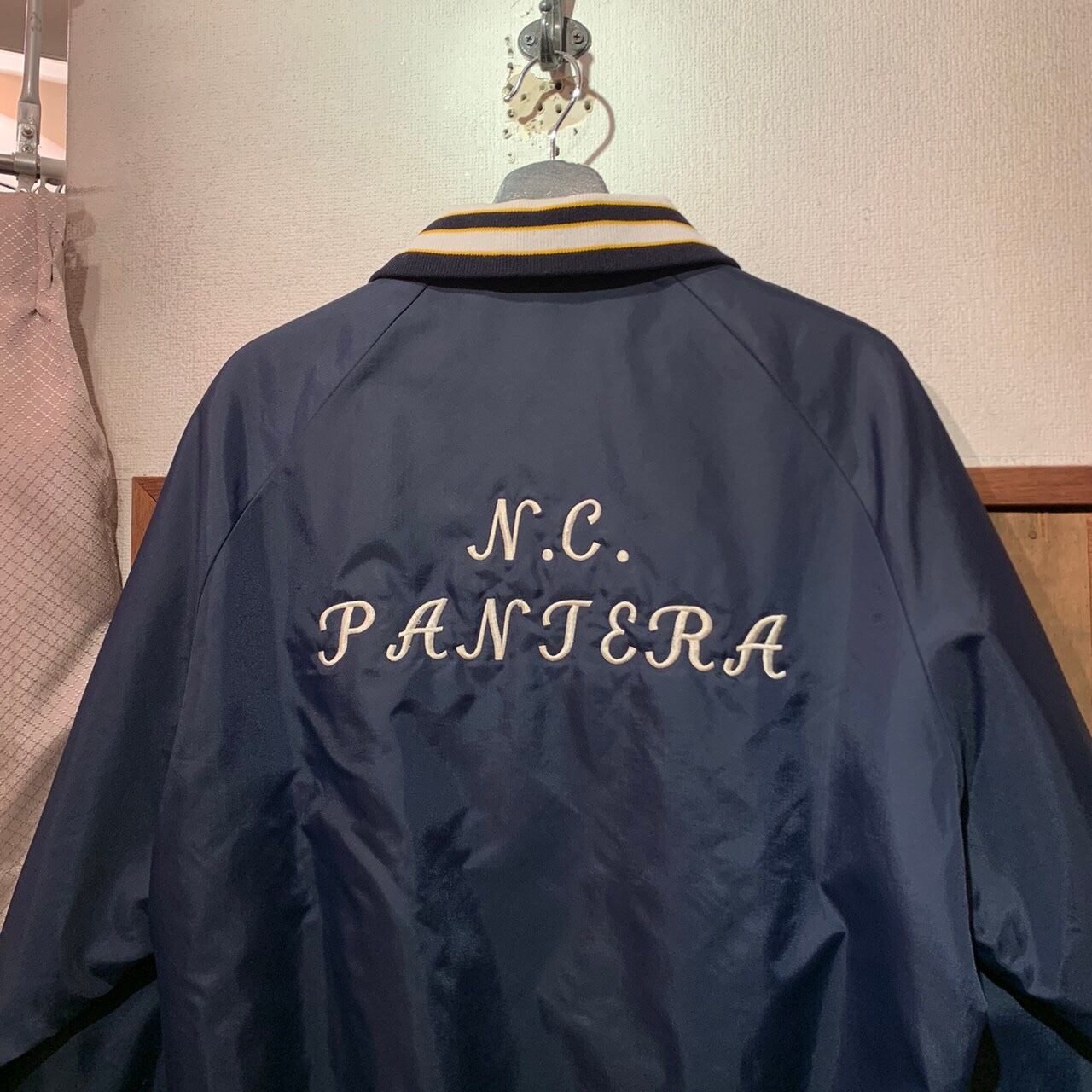 “DeLONG” 80's vintage navy×white×yellow nylon stadium jumper