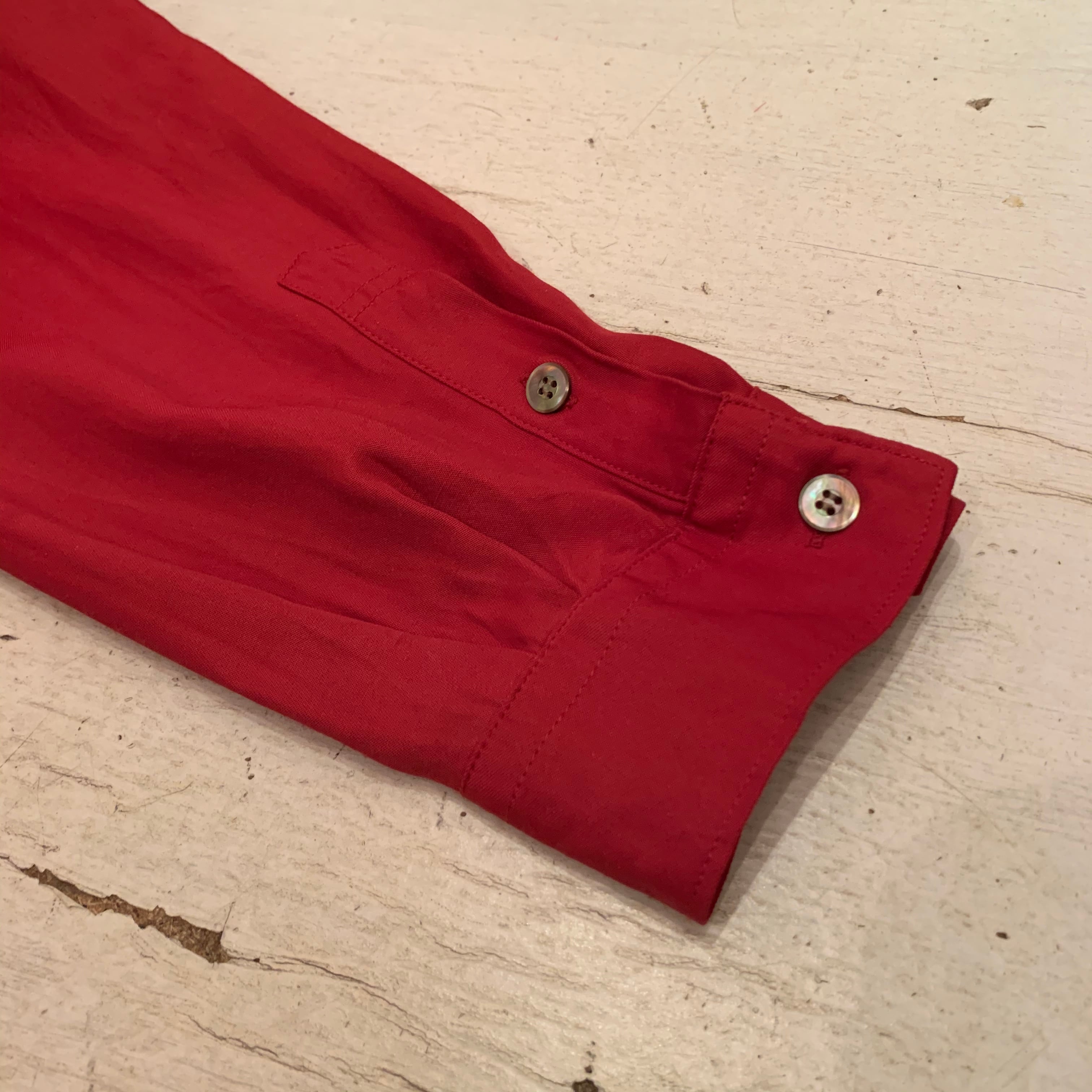 “HYSTERIC GLAMOUR” 90’s red rayon embroidery design L/S open-collar shirt