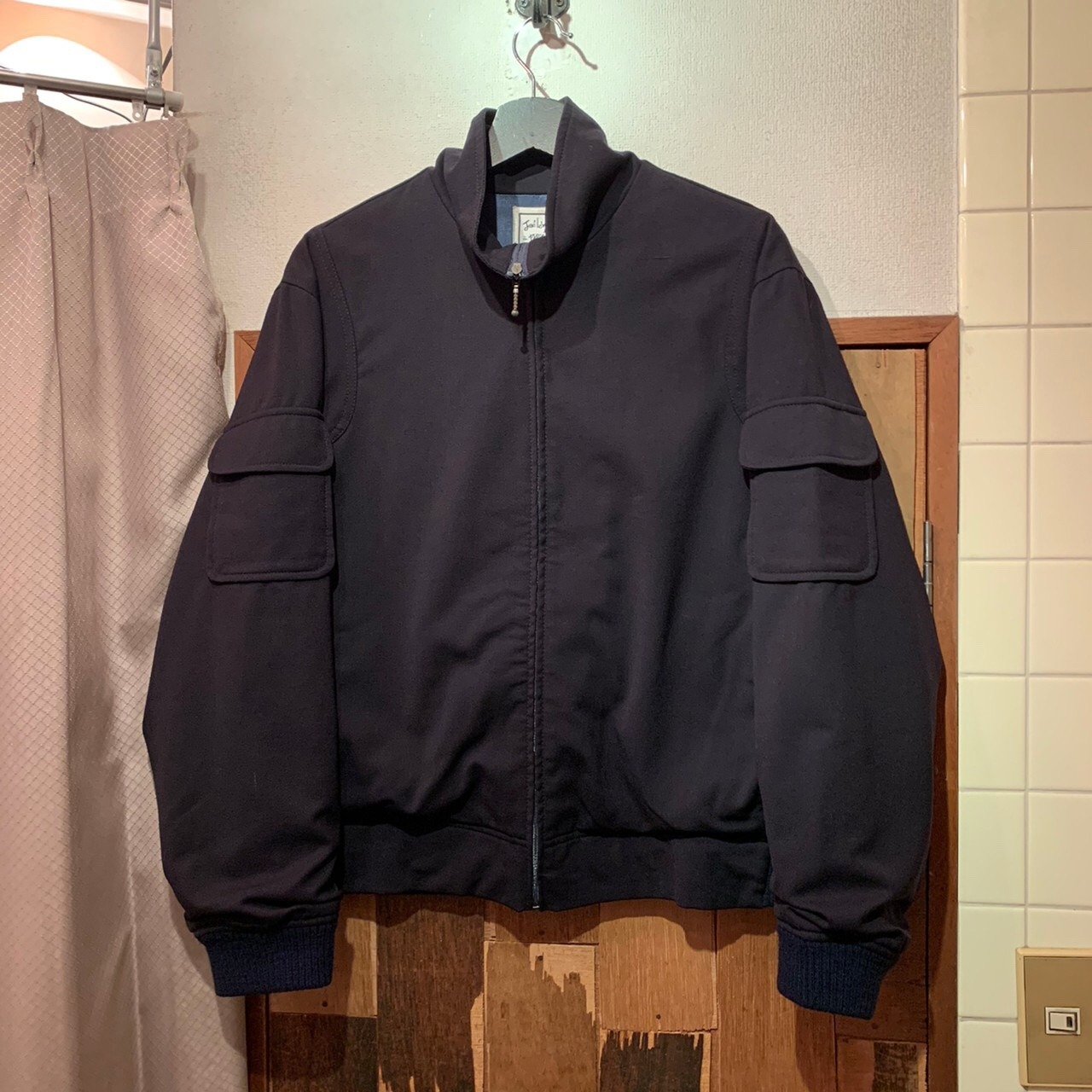 “Jose Levy” dark navy wool/polyester/polyurethane arm pocket design high-neck zip-up blouson