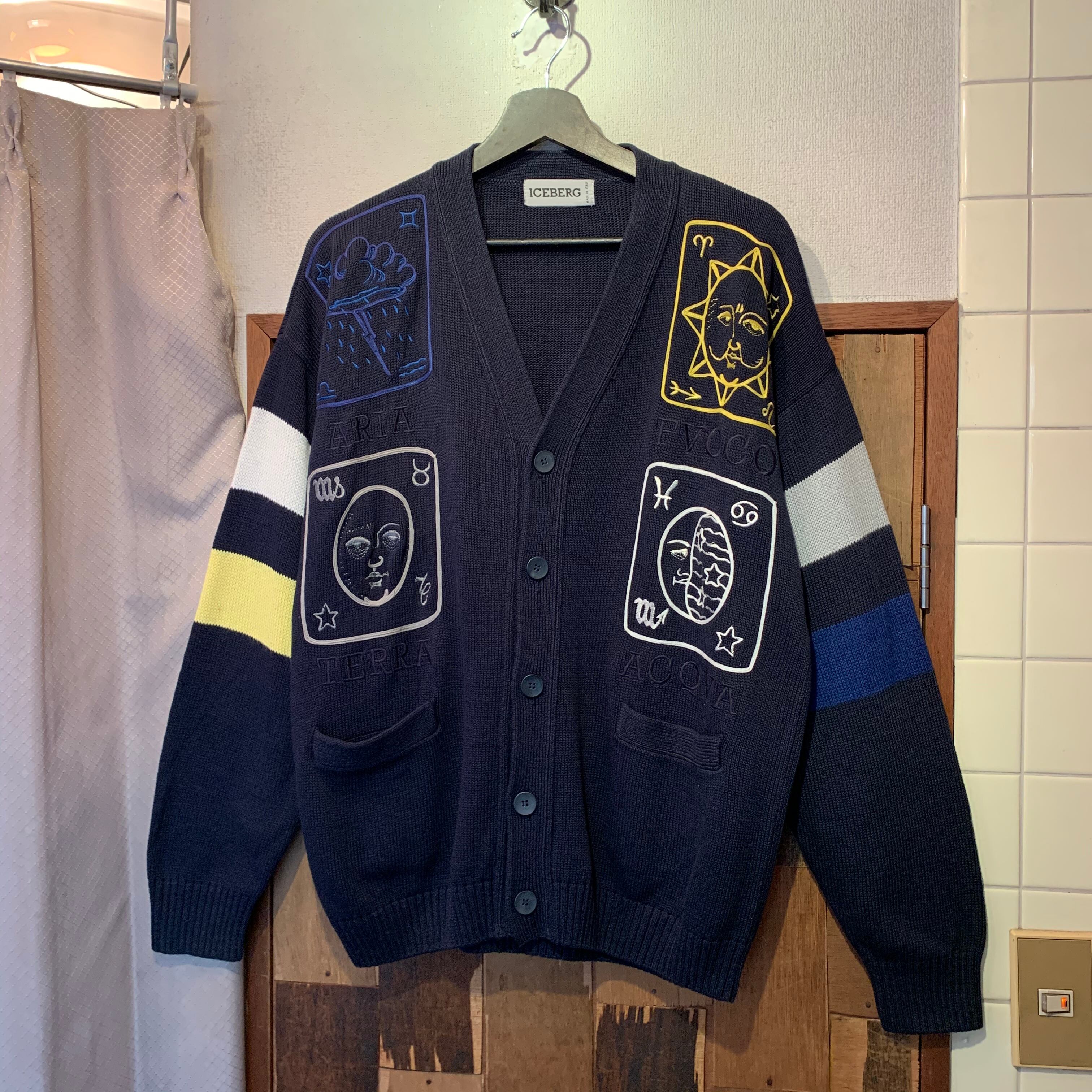 “ICEBERG” navy cotton/rayon embroidery design knit cardigan