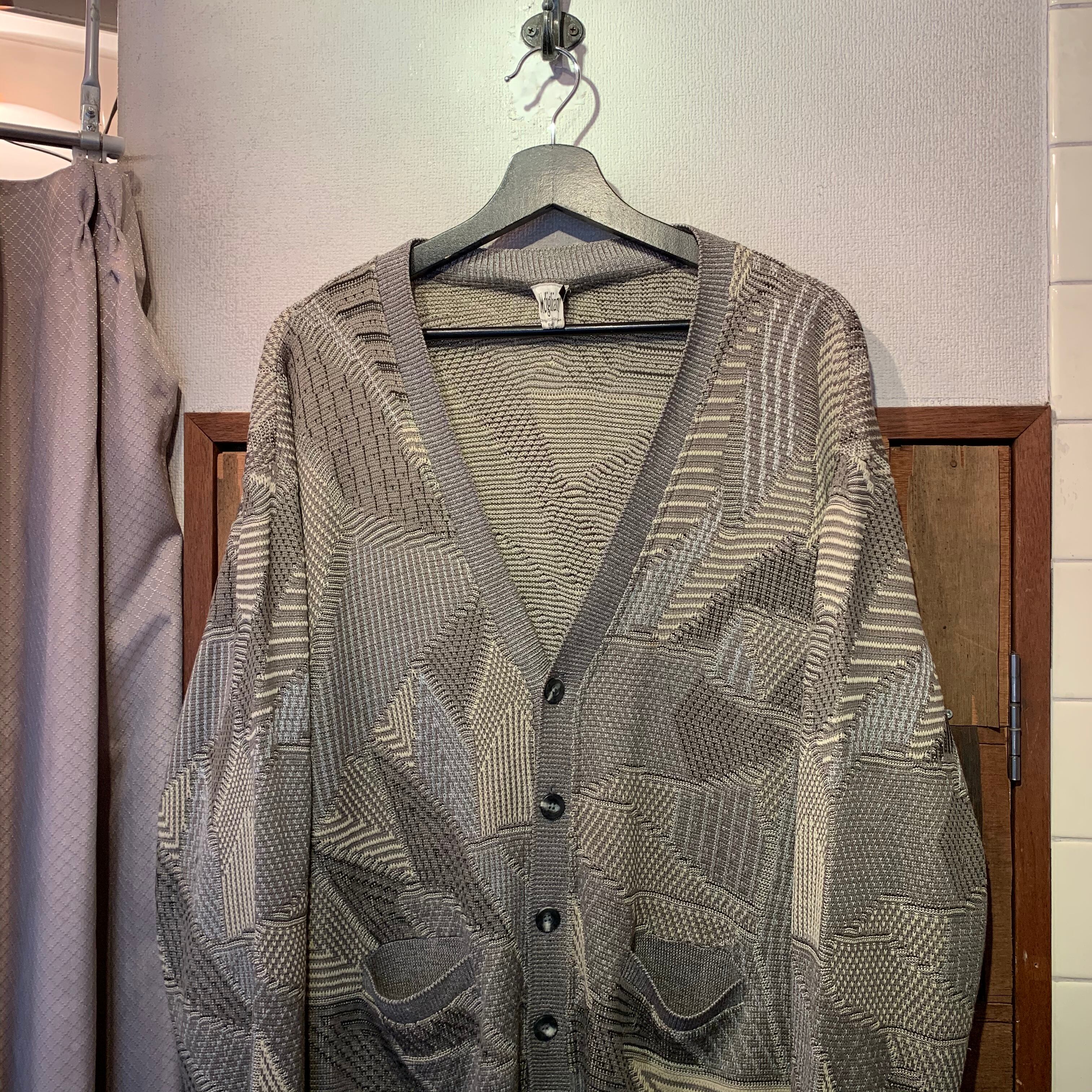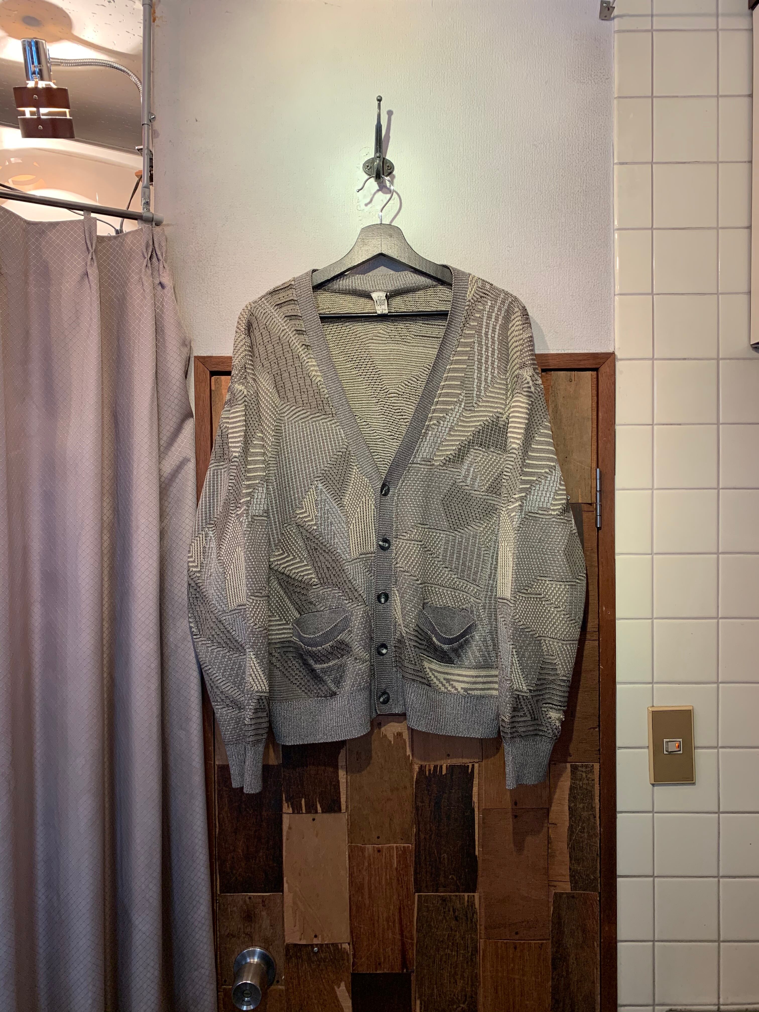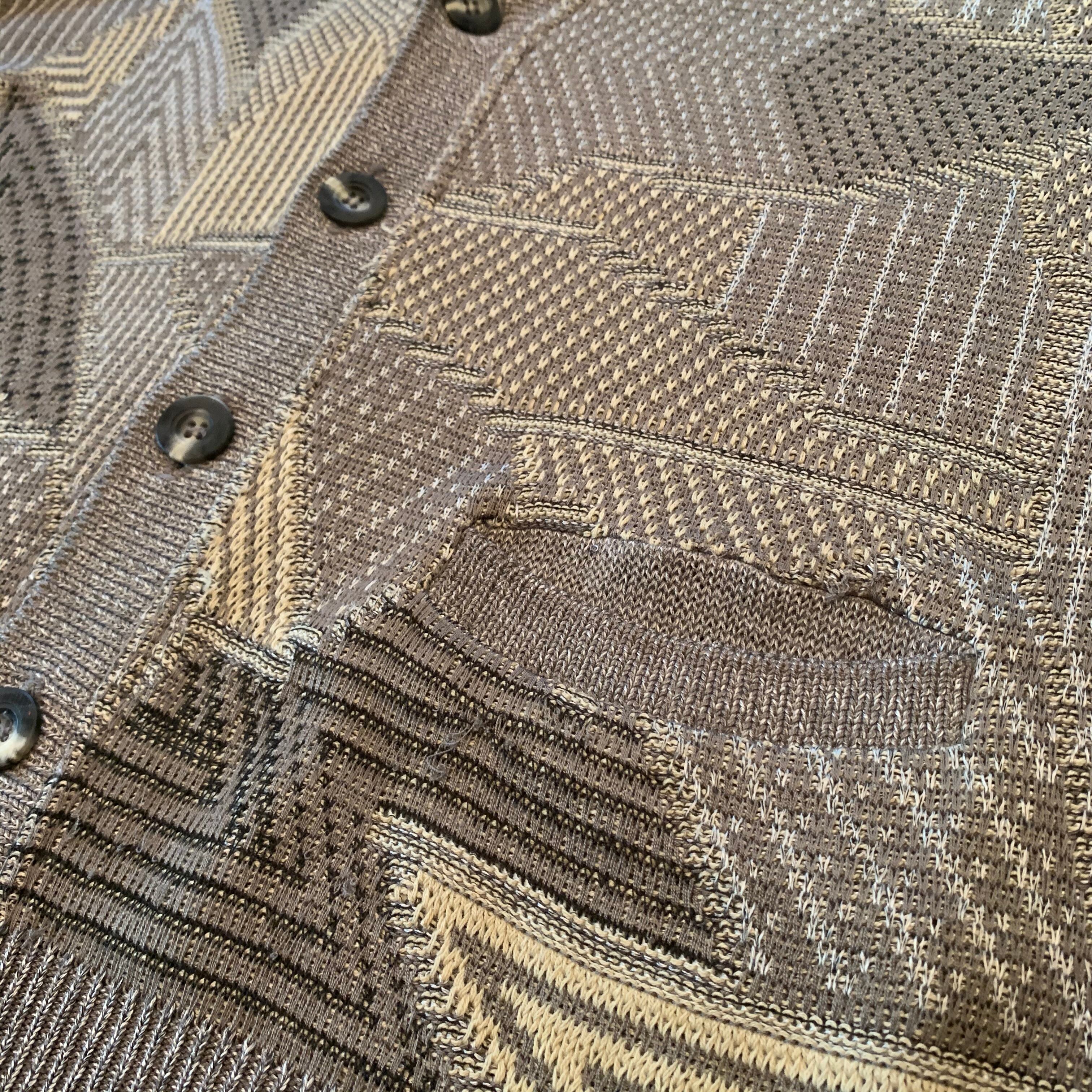 “Modigliani” greige cotton base unique pattern knit cardigan