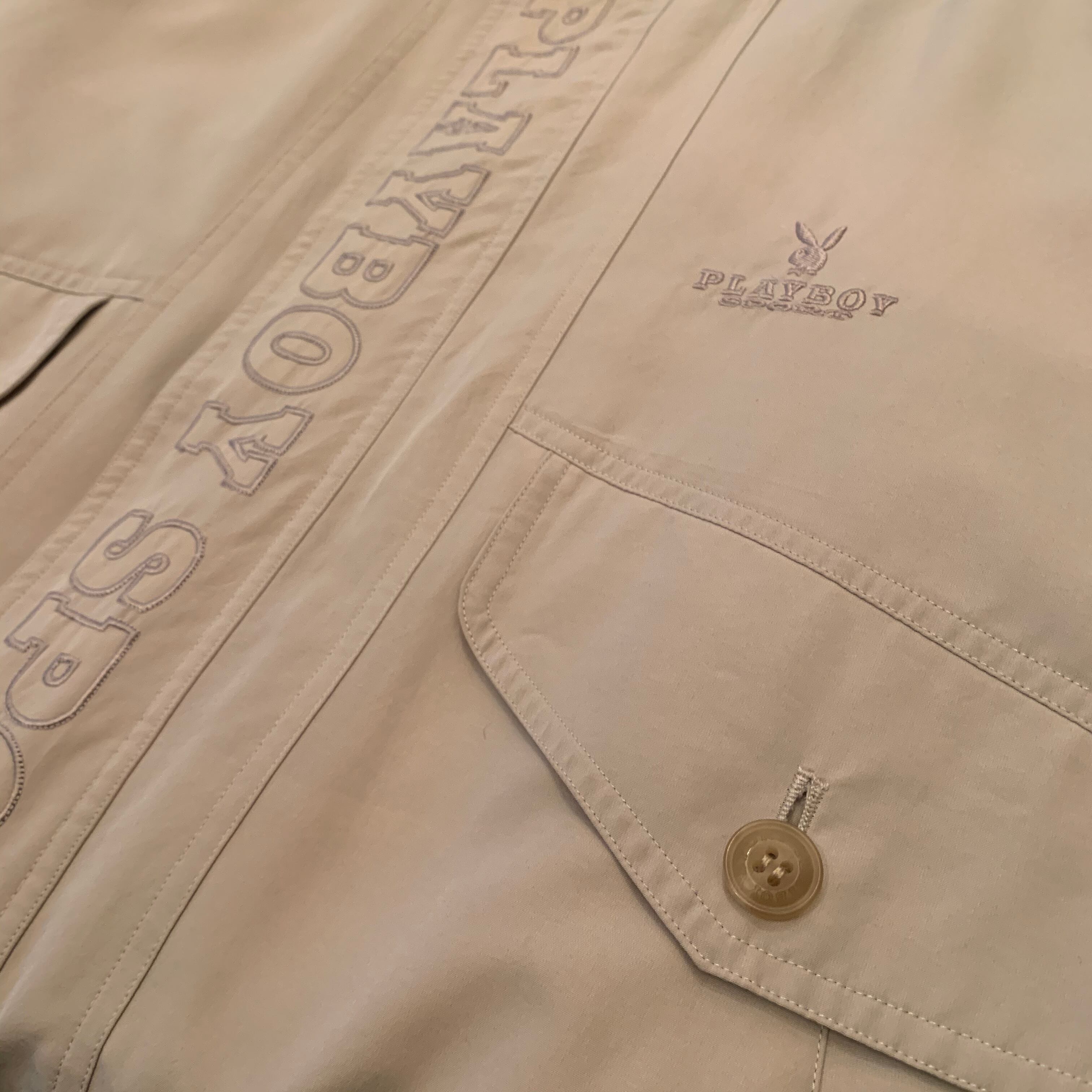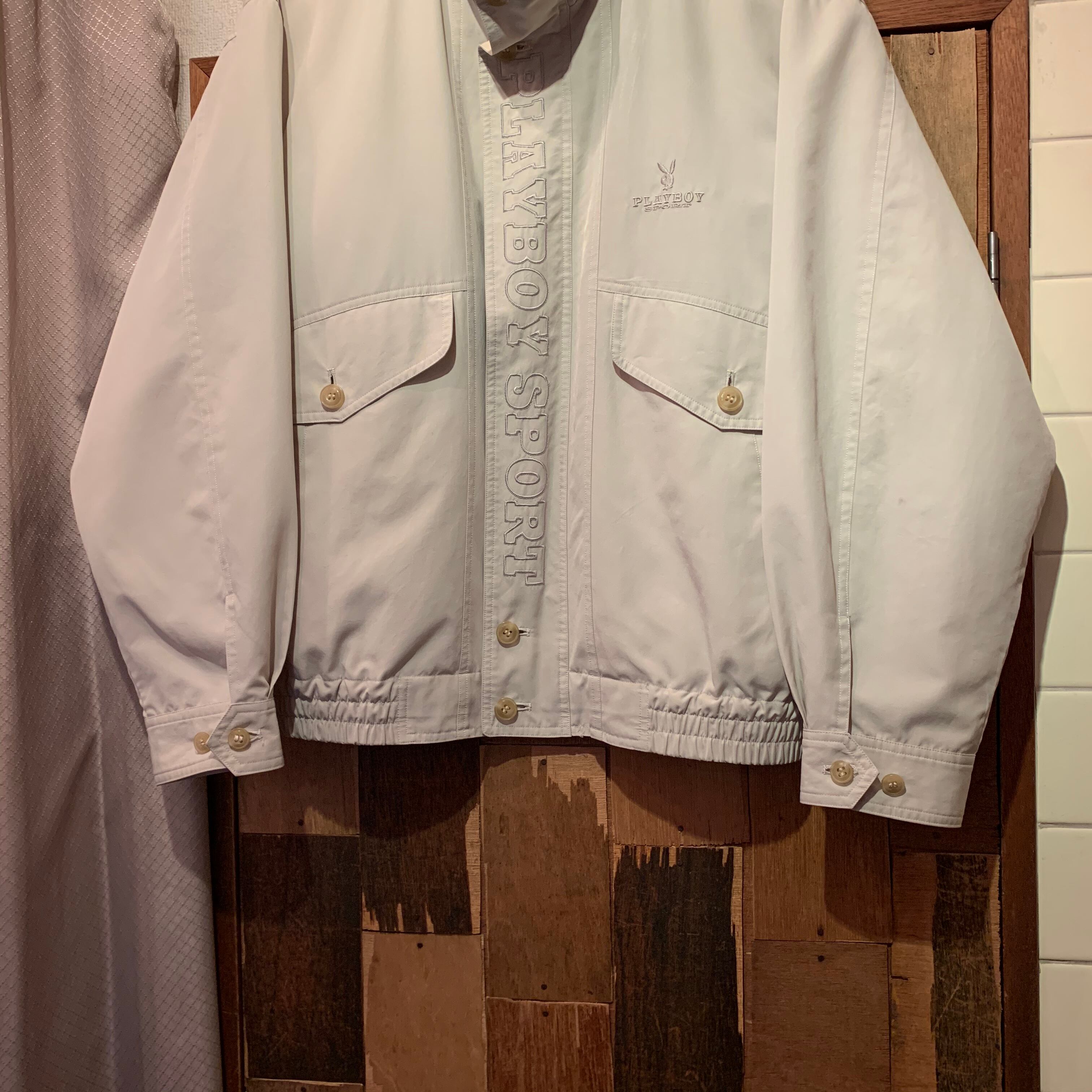“PLAY BOY” cream zip&button embroidery design stand-collar blouson