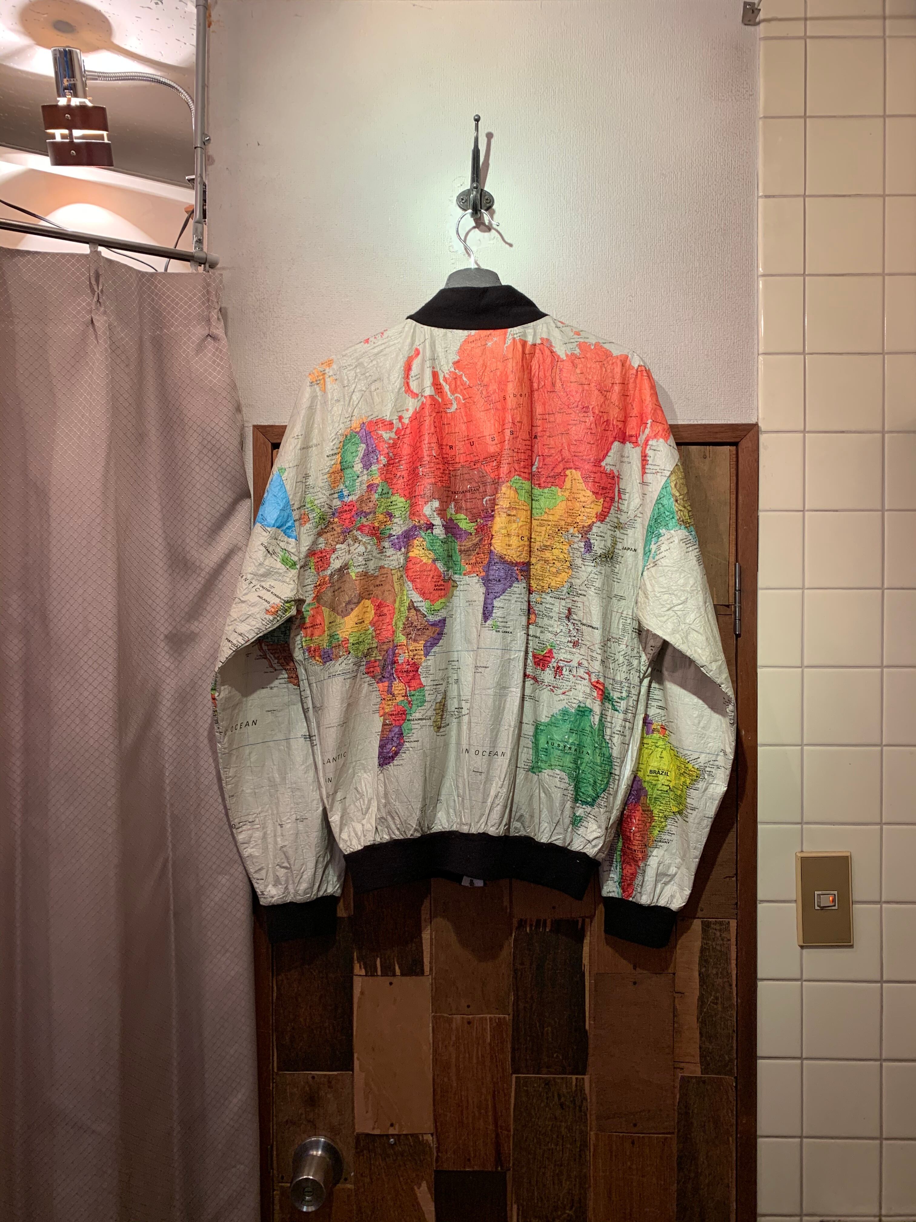 “WEARIN TEH WORLD” ©︎1991「カートコバーン」ivory base map pattern zip-up paper blouson