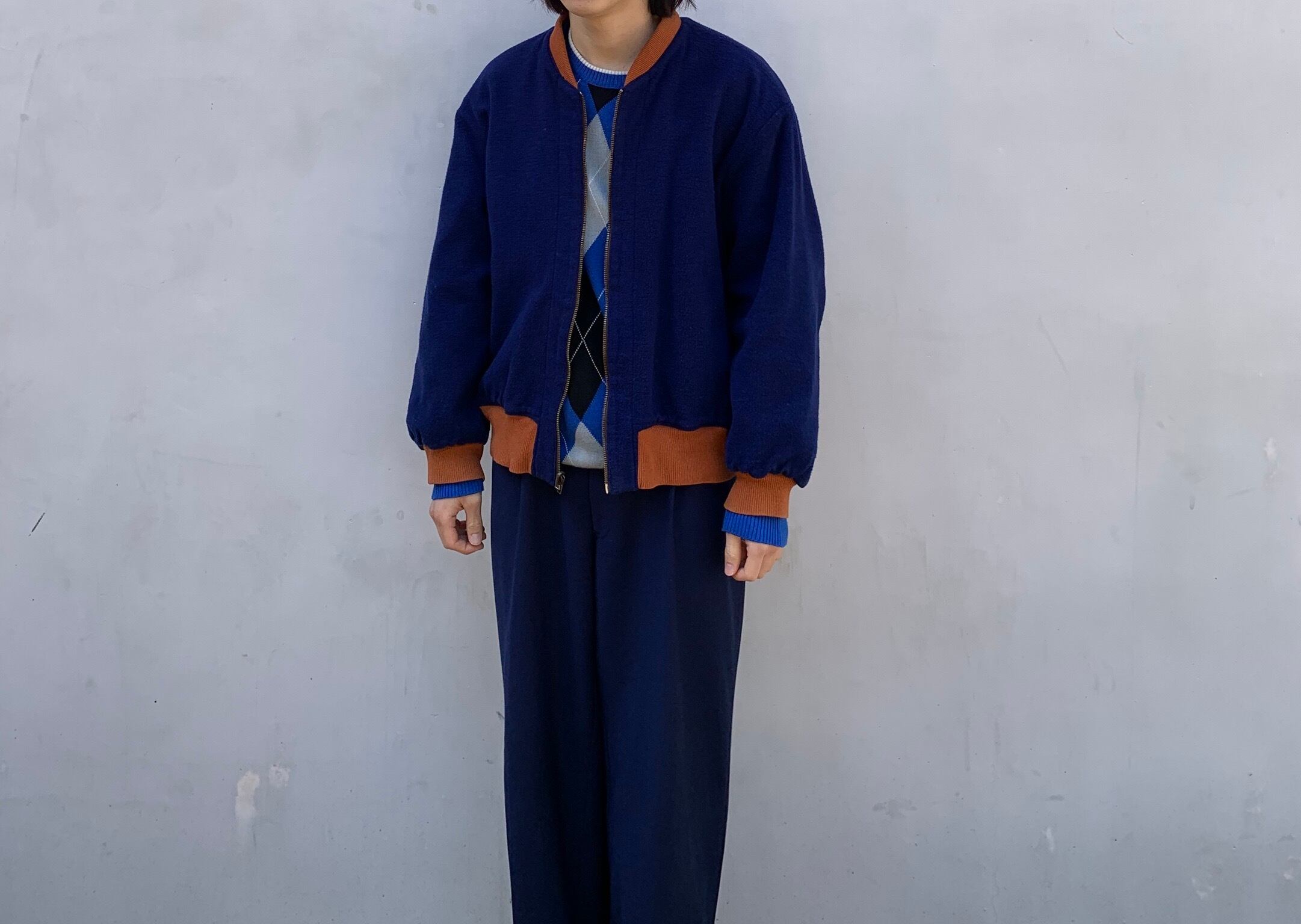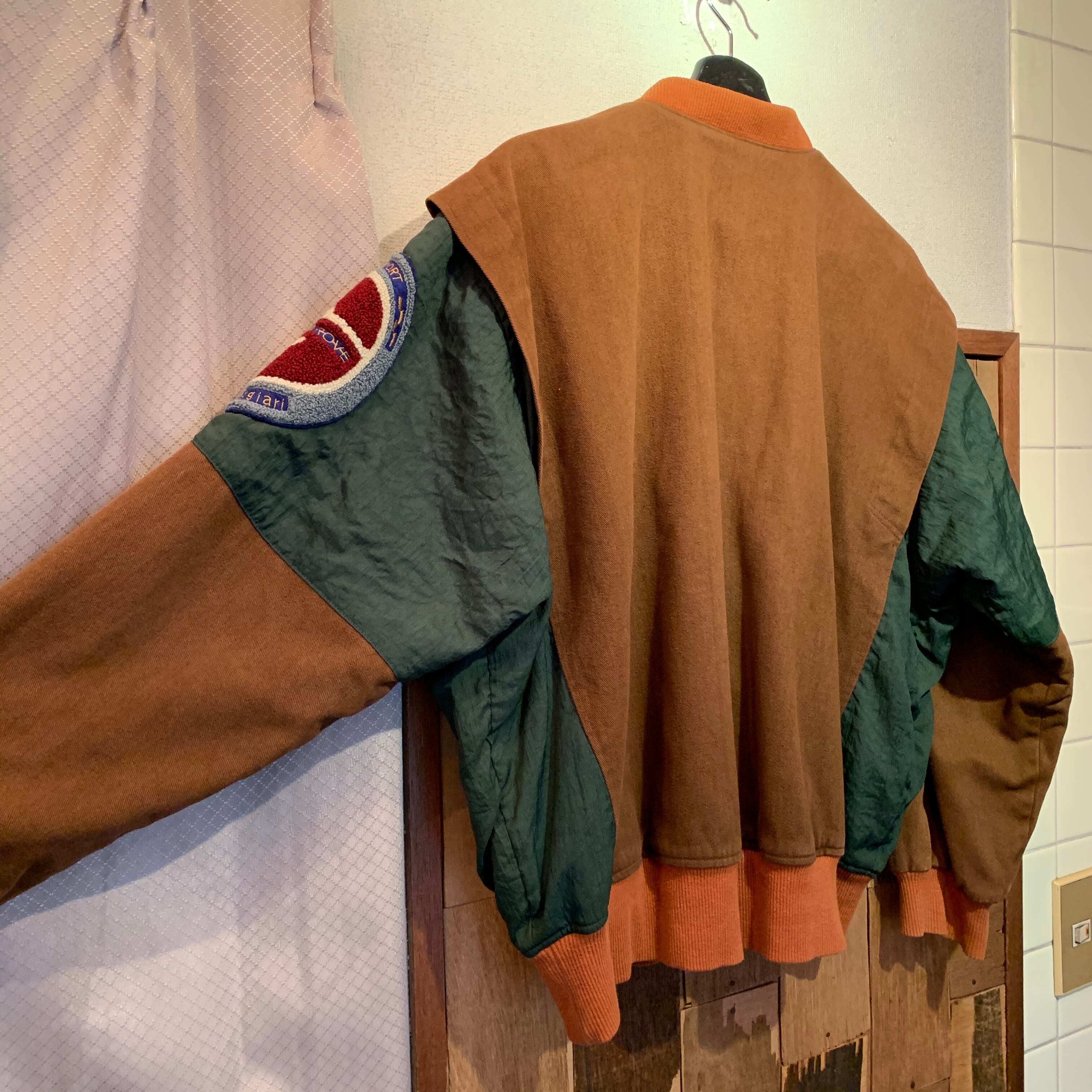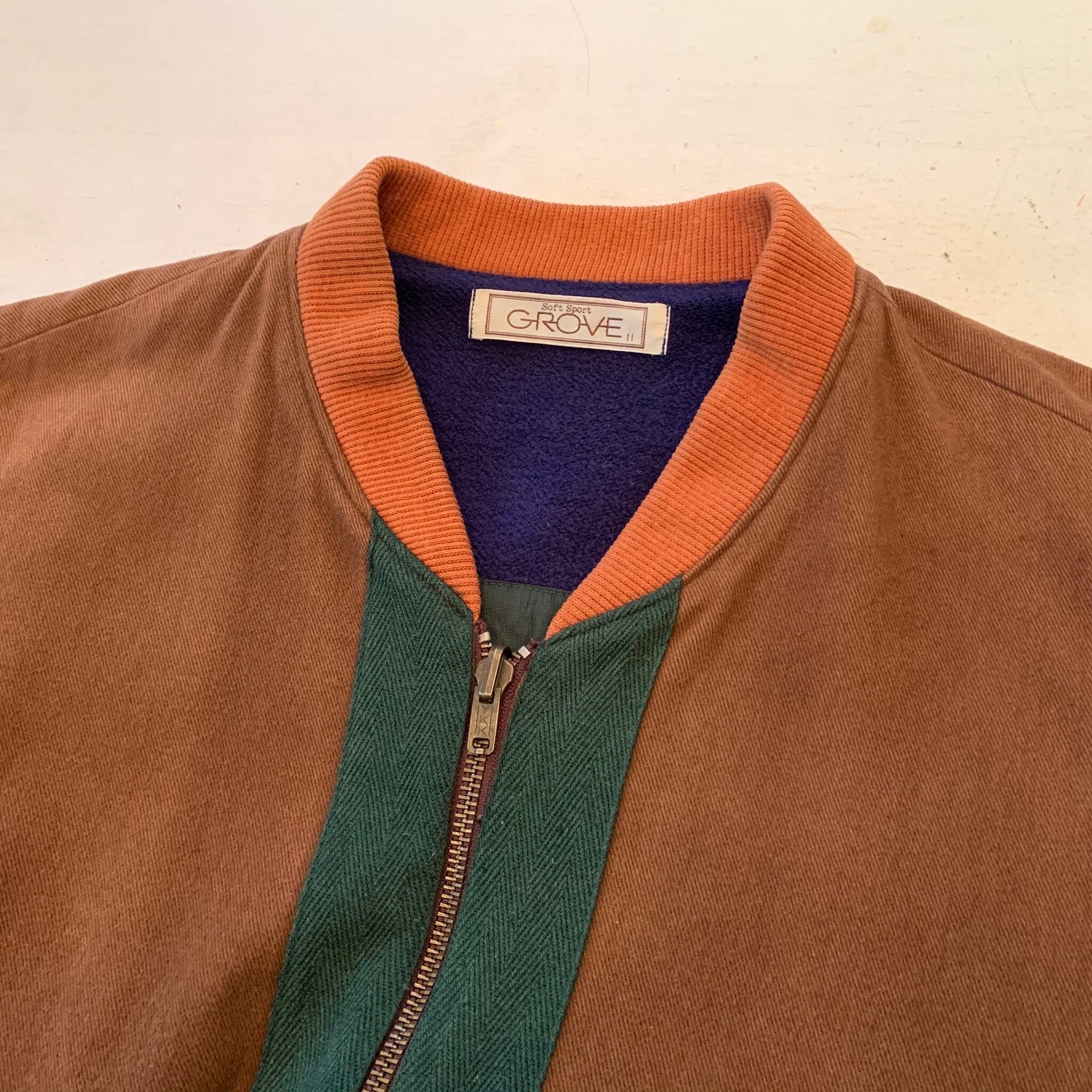 “GROVE” 80’s~90’s brown/moss green×navy wappen&switch design zip-up blouson