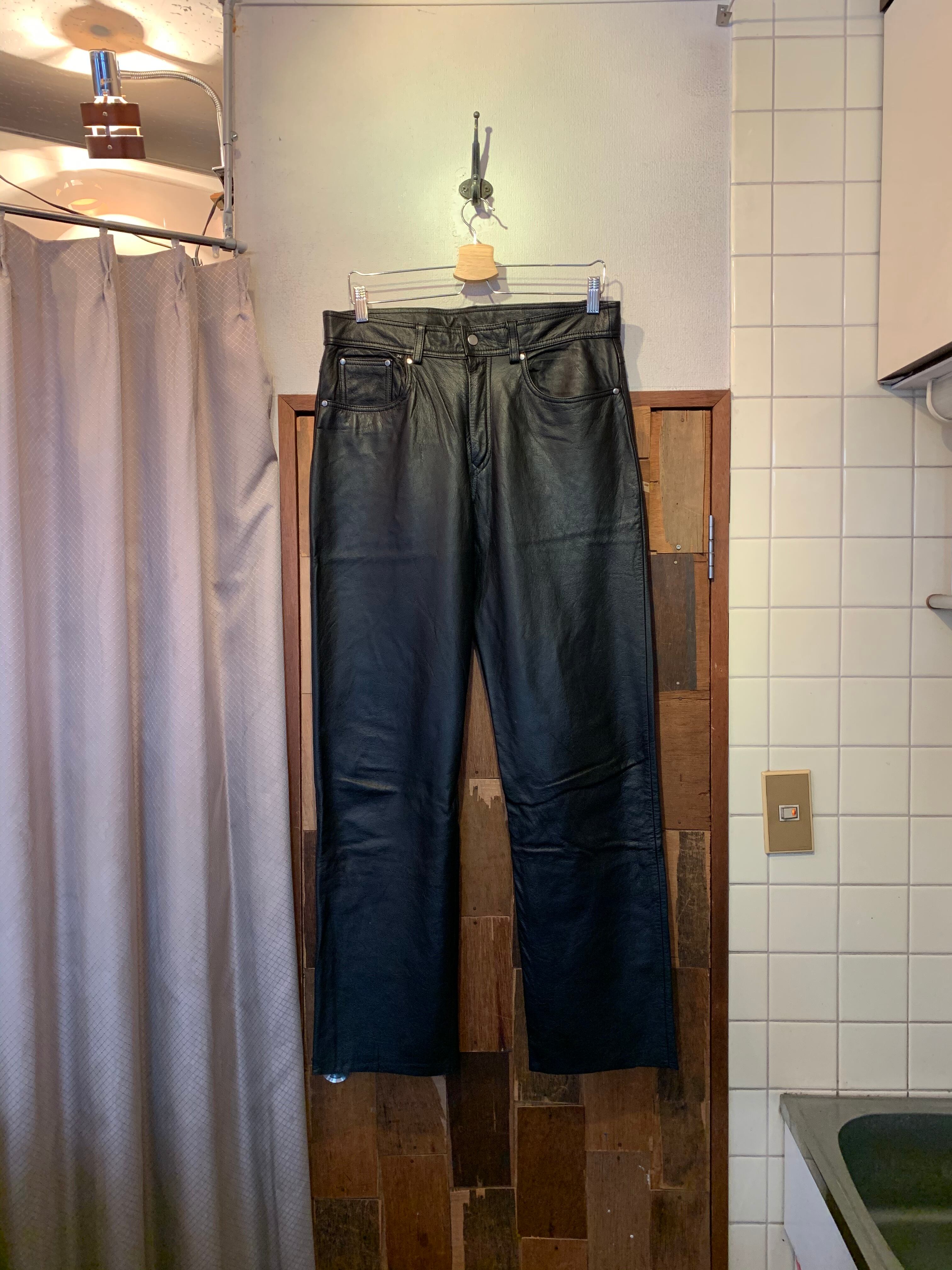 black cow leather straight pants