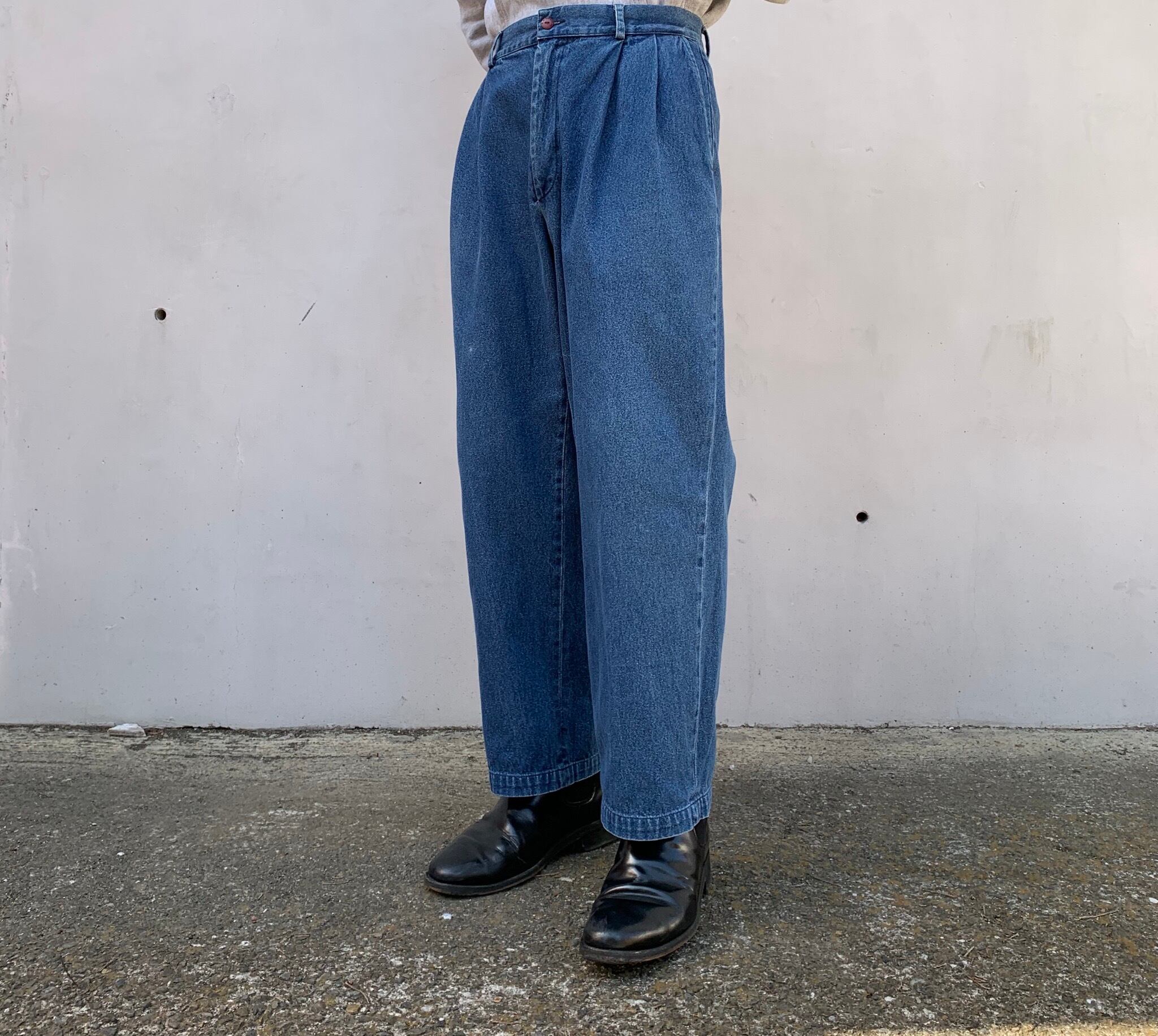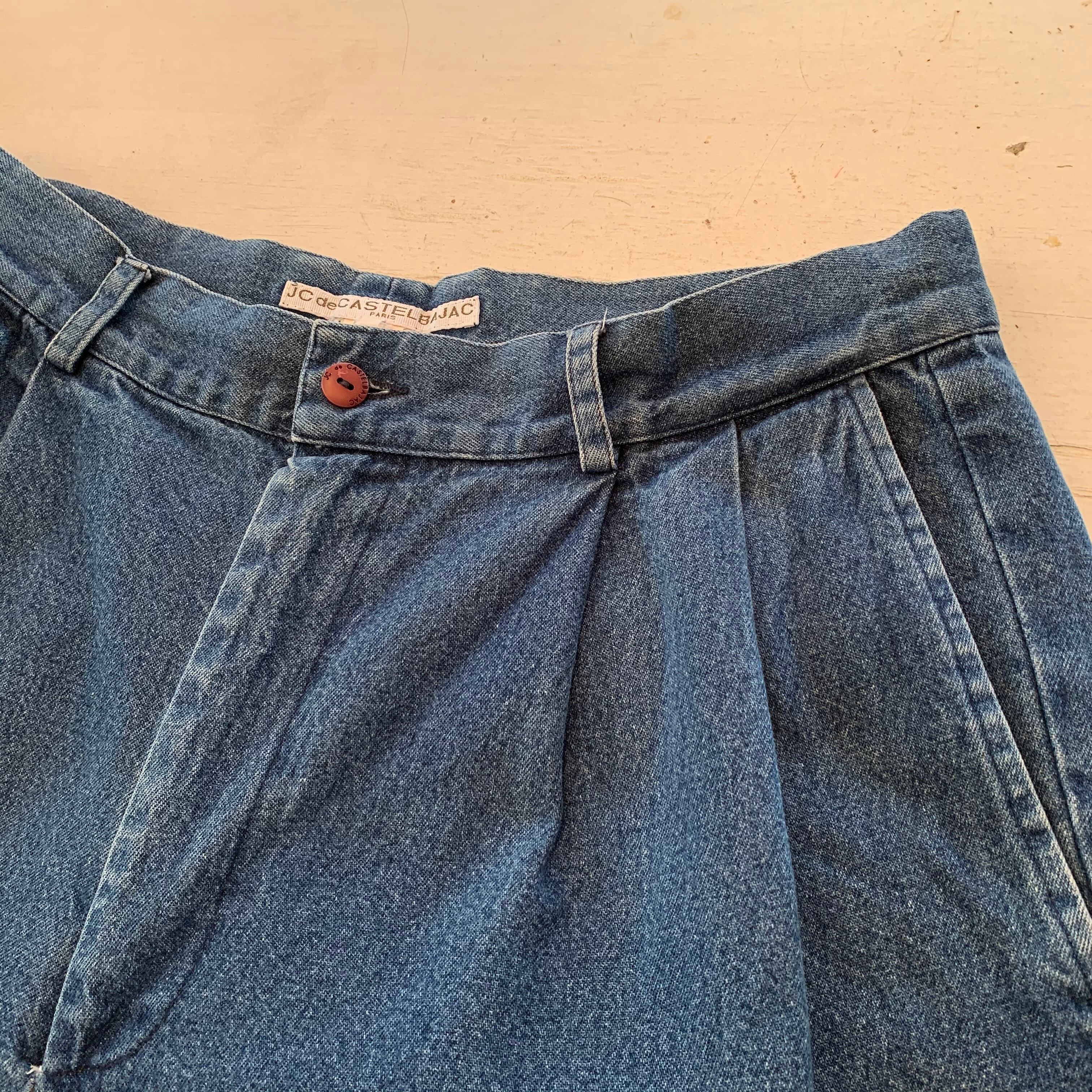 “JC de CASTELBAJAC” indigo point embroidery design 2tuck wide denim slacks