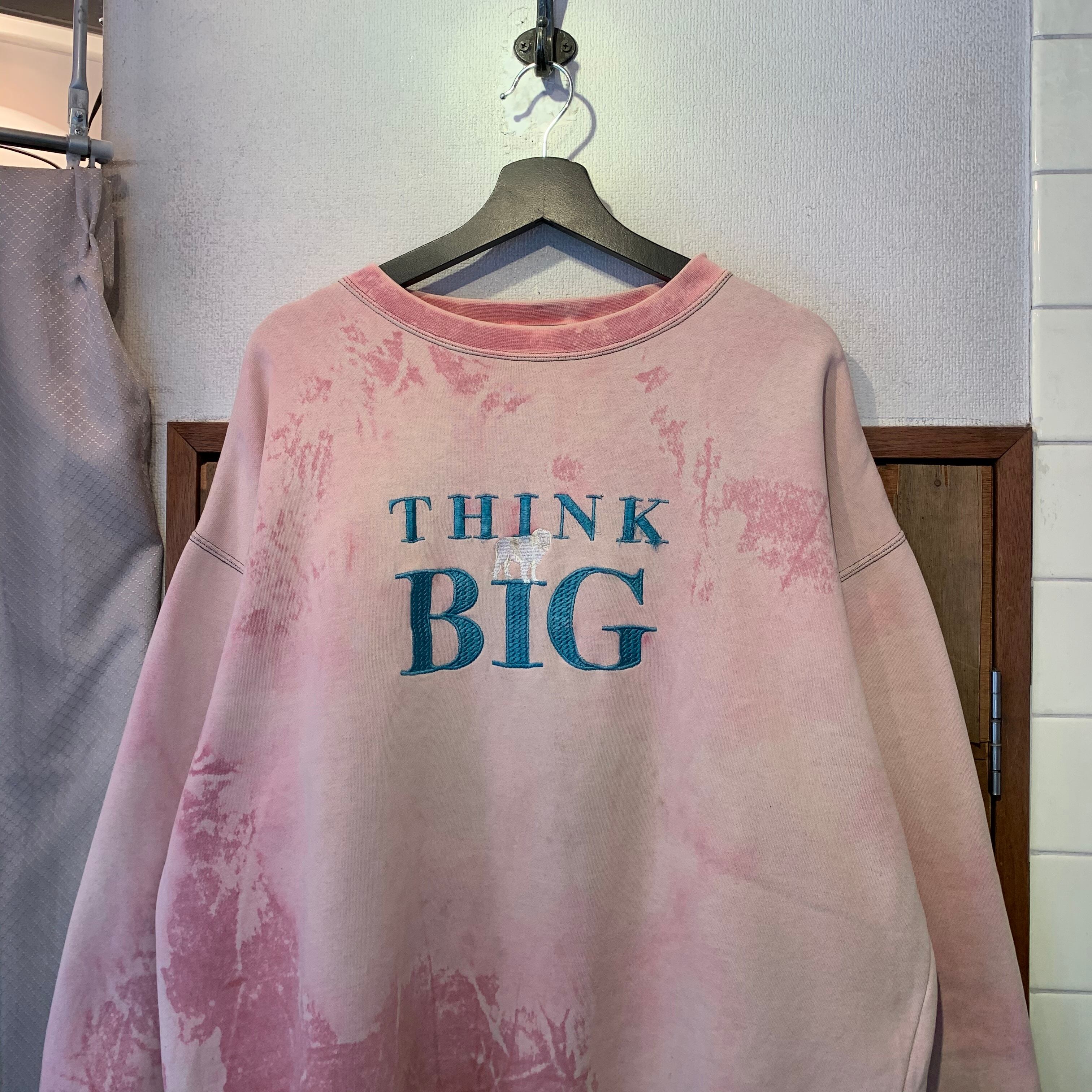 “BIG DOGS” pink beige embroidery&bleach design L/S sweat