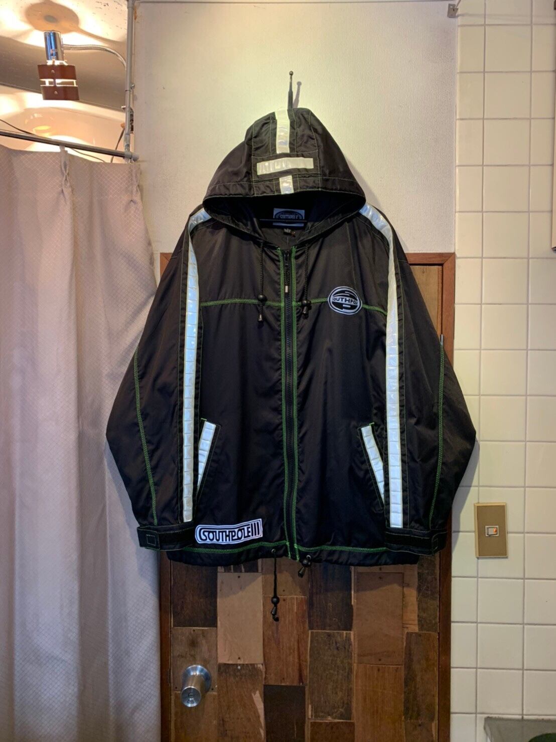 “SOUTH POLE” black×light green nylon reflector design zip-up hooded jacket