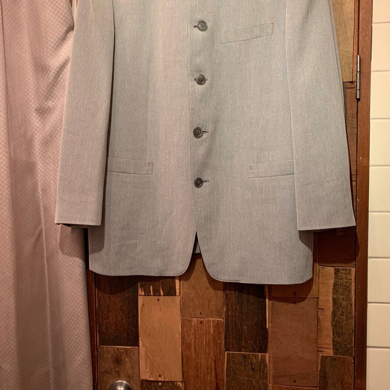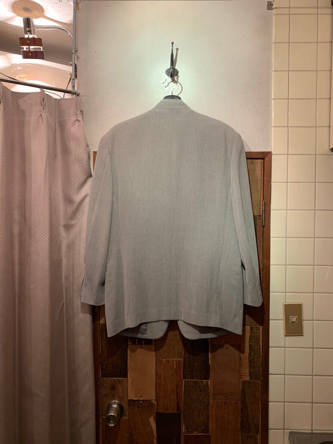 “BALMAIN” light gray poly/triacetate/linen mao-collar jacket