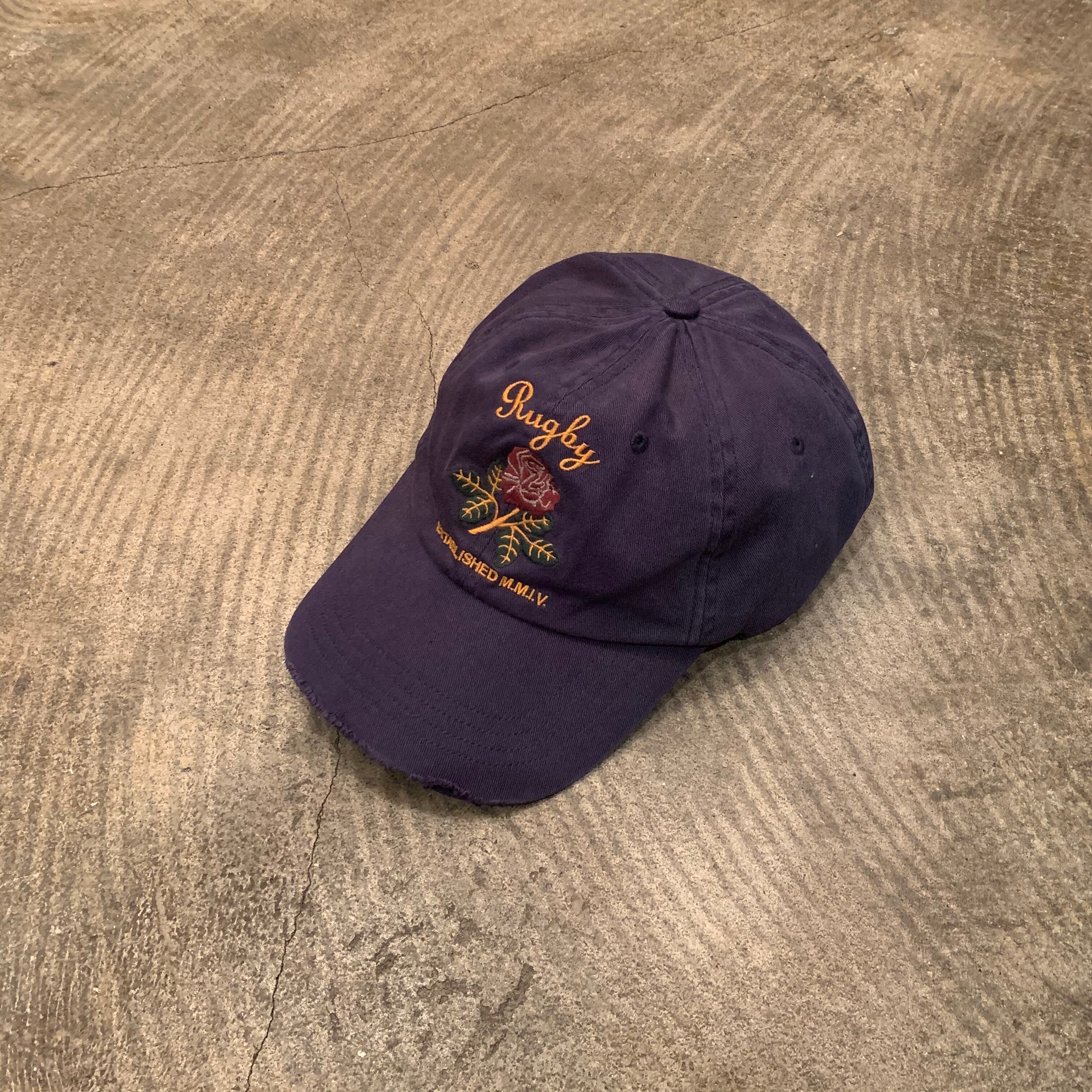 “RUGBY RALPH LAUREN” navy embroidery×damage design 6panel cap